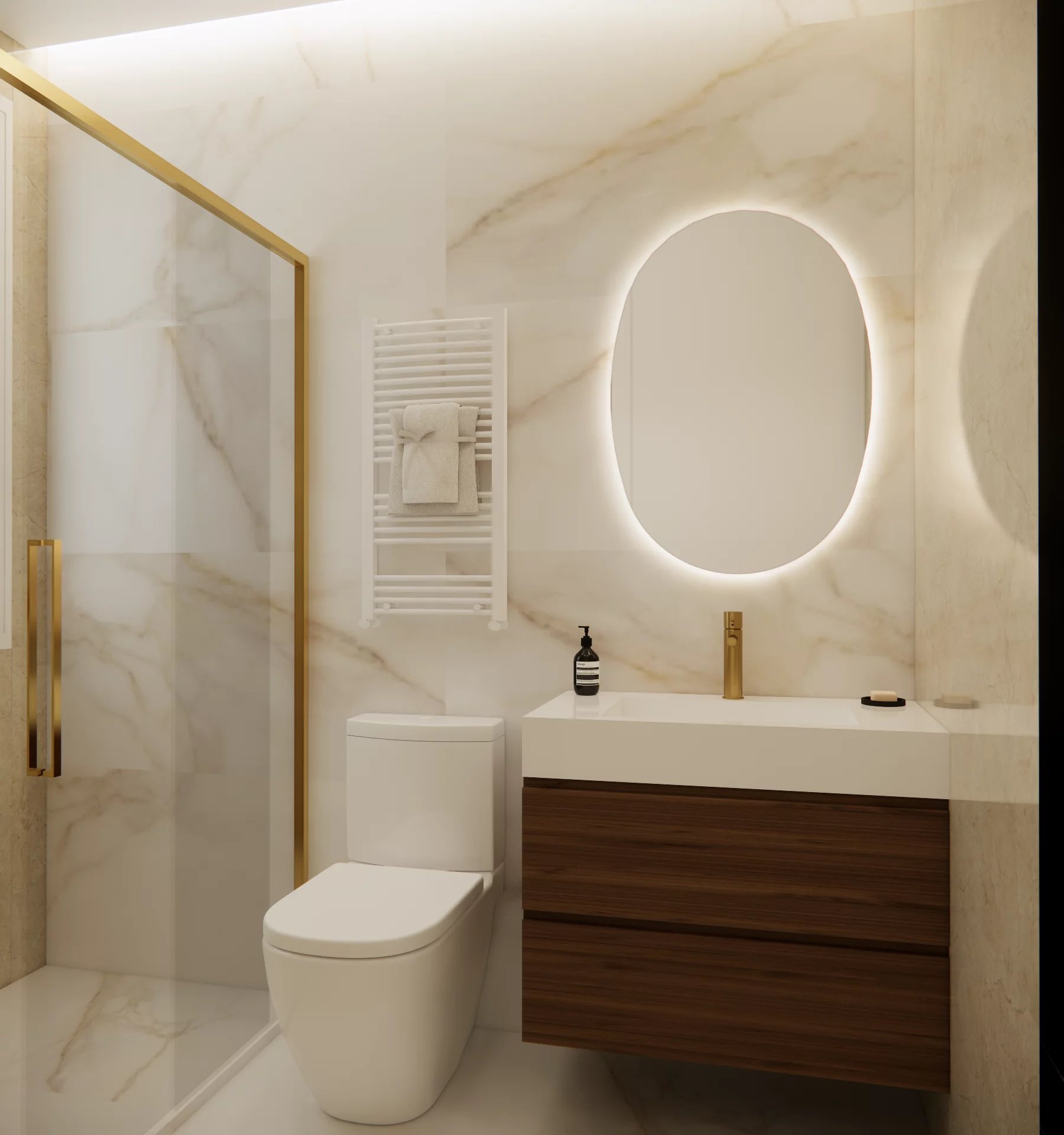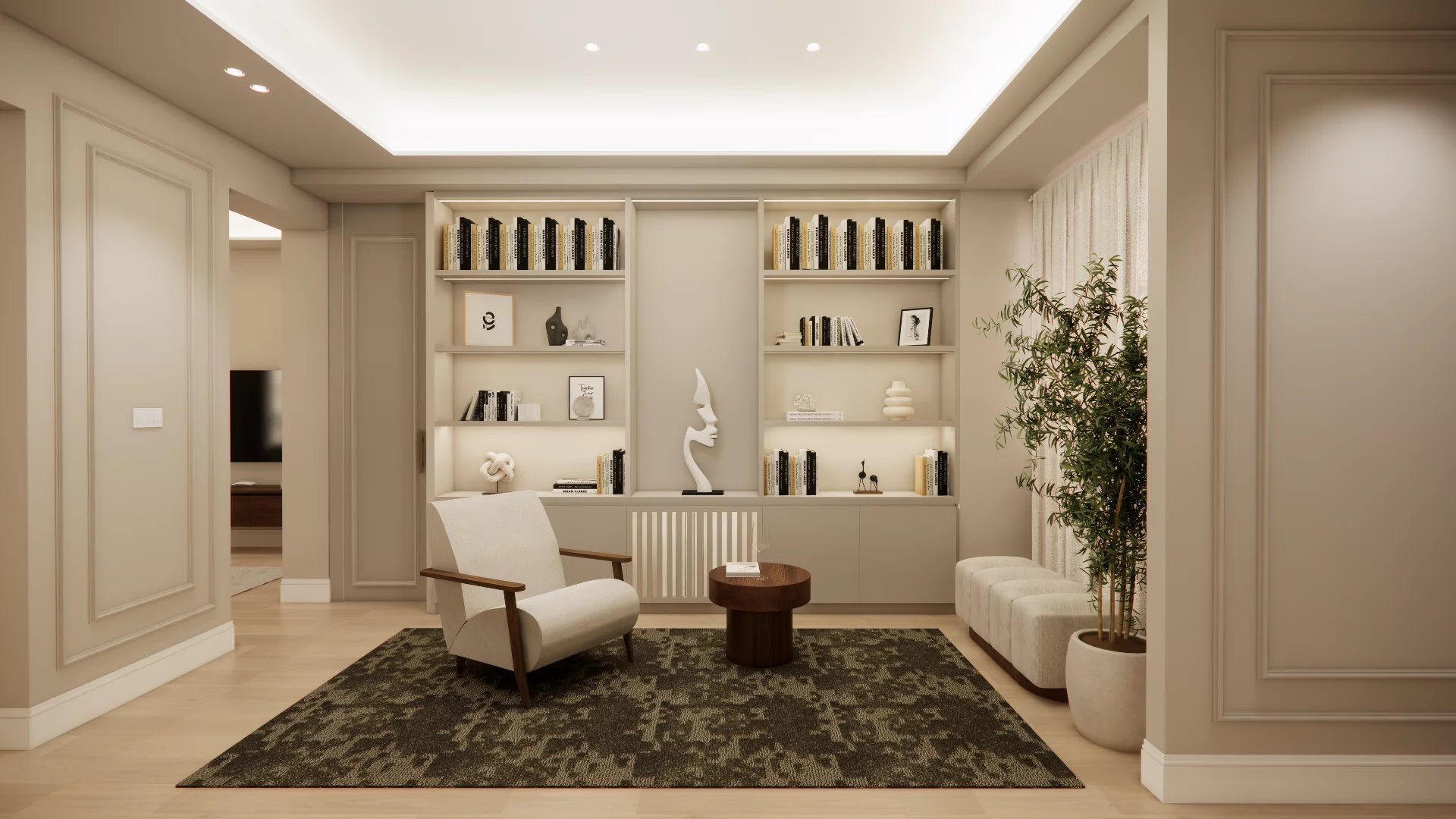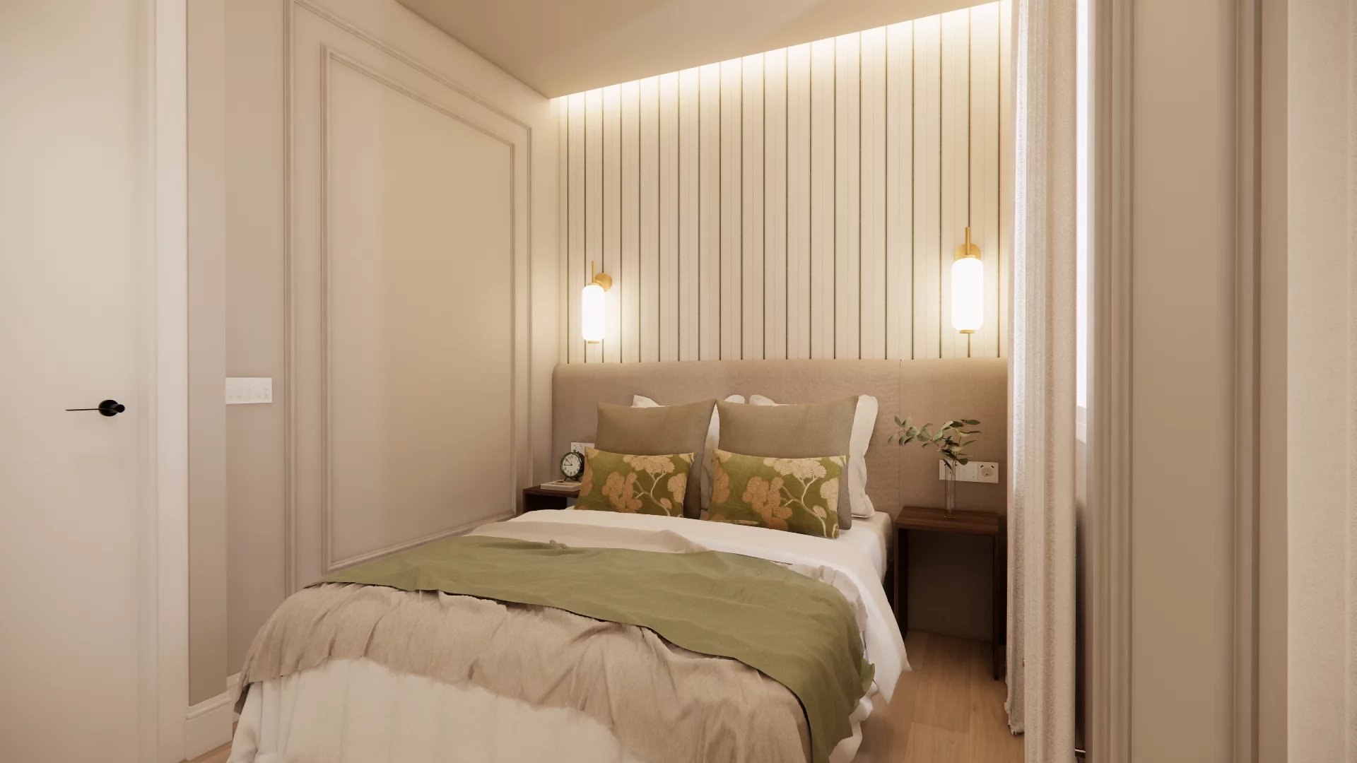 Located on the fourth floor of a classic 1940 building, this modernized interior apartment offers 117 m² of built space. The home includes two bedrooms and three bathrooms, and incorporates smart home technology, central heating, and air conditioning for contemporary comfort.