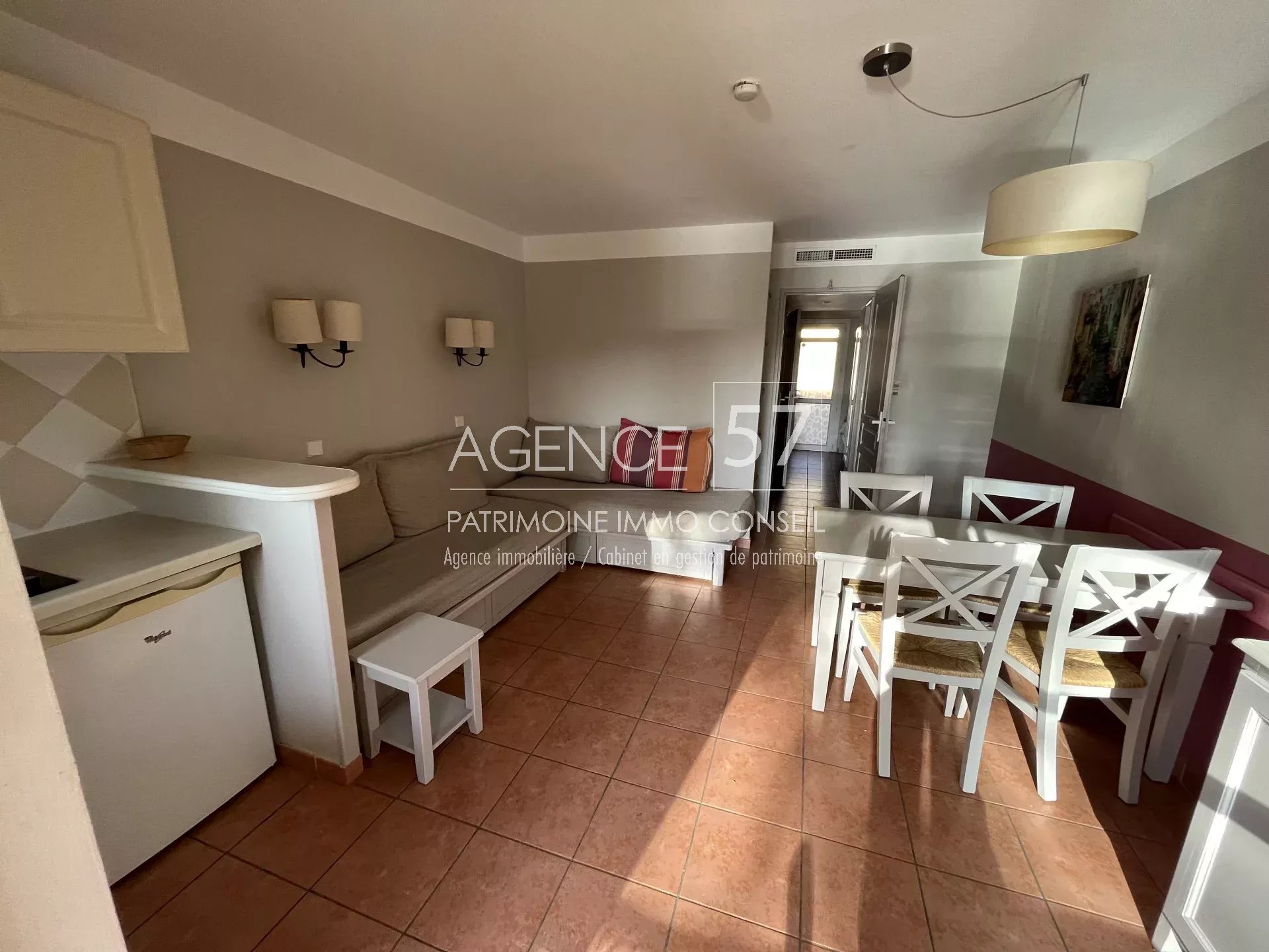 Exclusivité! Dans très belle résidence avec parc, proche des plages. Superbe appartement 2 pièces rénové. 1 chambre, beau salon avec cuisine équipée ouverte, salle de bains, toilettes séparées er dressing. terrasse, belle vue sur la Siagne. Calme et résidentiel. Parkings collectif. Tout est inclus dans les charges y compris l'électricité. Sous bail commercial renouvelé annuellement et résiliable en cas de vente.