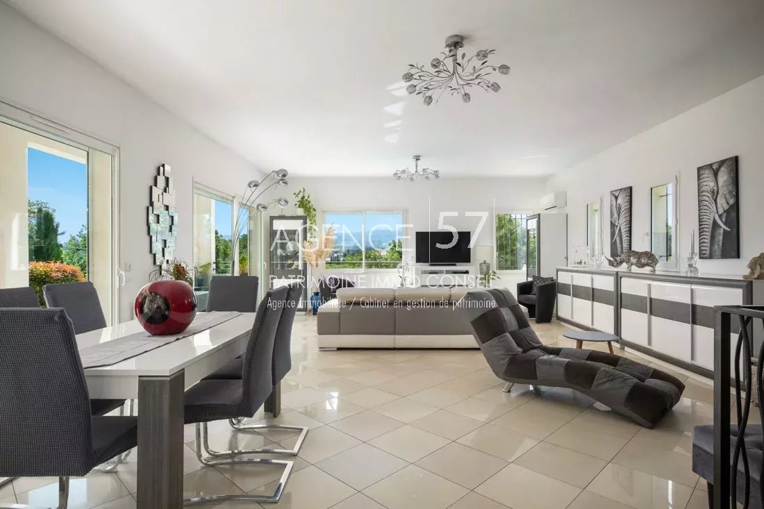 Située à Mougins au sein d'un petit domaine privé, en position dominante, découvrez cette très belle villa récente, développant de très beaux volumes sur un terrain de 1600m² avec piscine. Grande réception avec salon de 56m², une cuisine semi-ouverte, une salle à manger. Sur le même niveau, 2 chambres avec salle de bains en suite. Au niveau inférieur, 2 chambres supplémentaires, une salle de douches, un dressing. Un grand garage pour trois véhicules complète cette propriété. Sans vis à vis et exposition sud ouest.