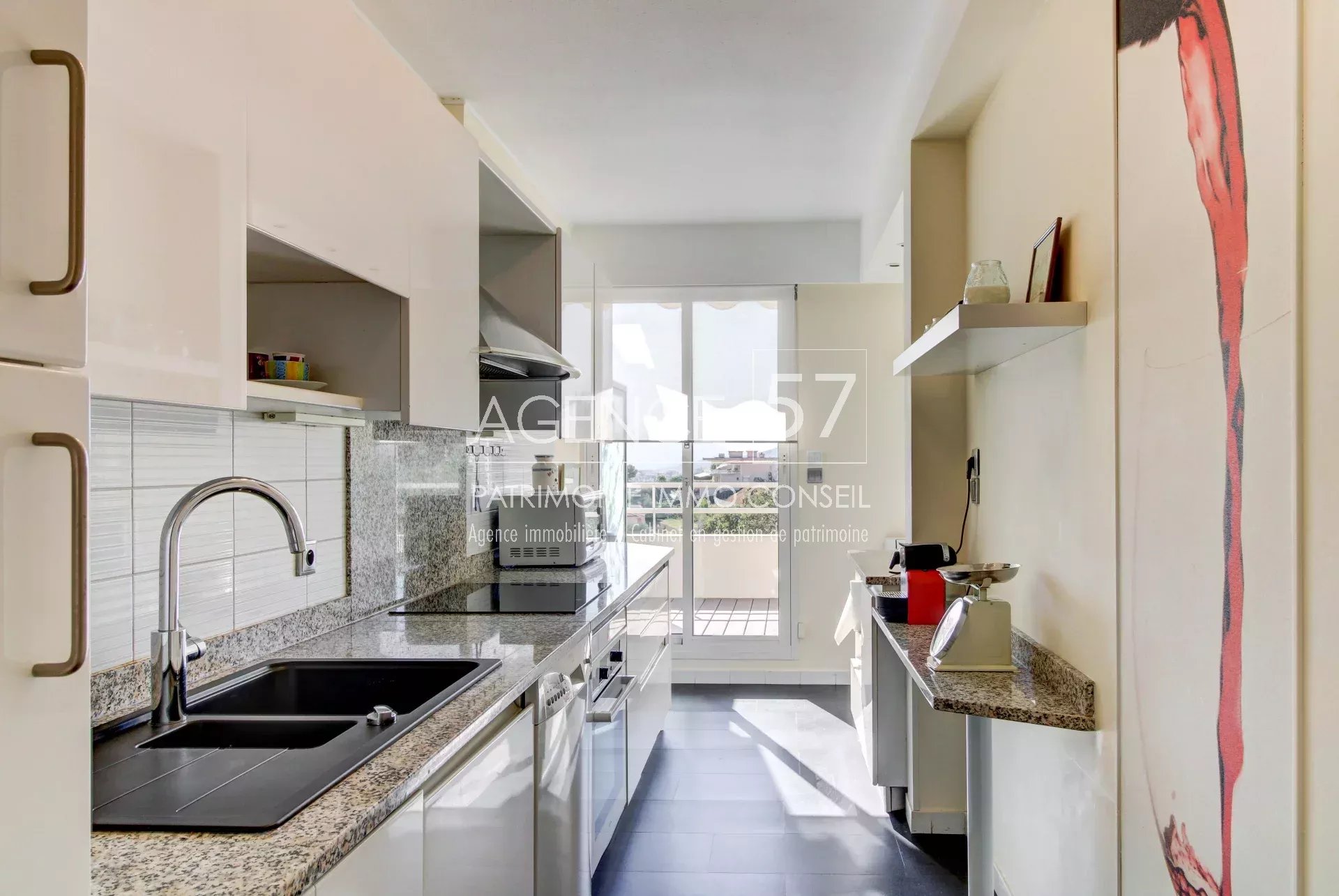 Direkt oberhalb des alten Dorfes Le Cannet, das zu Fuß erreichbar ist, in einer kleinen, gepflegten Eigentumswohnung, charmante Wohnung, die geschmackvoll renoviert wurde, nach Süden ausgerichtet ist und einen schönen Meerblick bietet. Eingang mit Schrank, schönes, sonnenverwöhntes Wohnzimmer, das sich auf eine tiefe Terrasse öffnet, die im Grünen ertrunken ist, ohne Vis-à-vis mit dem Meer und den Hügeln des Esterel für den Blick. 3 Schlafzimmer, eines davon mit vielen Schränken ausgestattet, ein Badezimmer, Gäste-WC. Im Untergeschoss, das mit dem Aufzug erreichbar ist, befindet sich ein großer überdachter Parkplatz mit der Möglichkeit, auch eine Box im selben Keller zu kaufen. 1 Keller auf der gleichen Ebene wie die Wohnung.