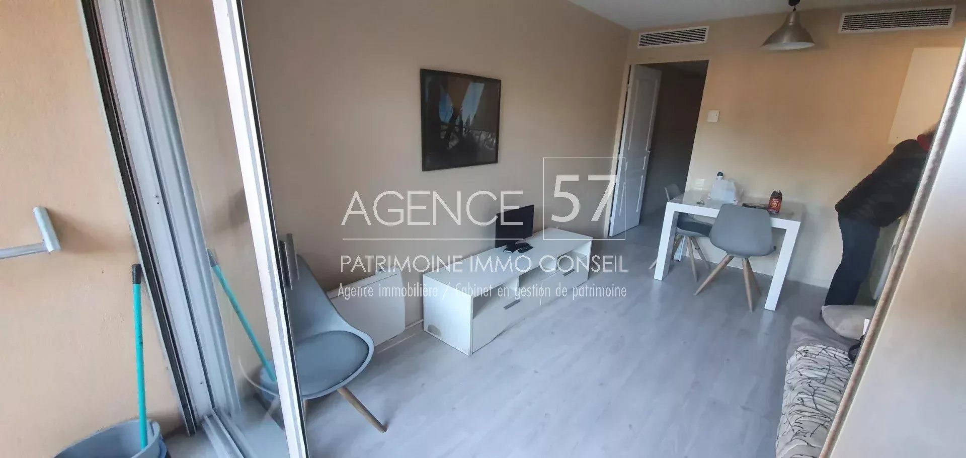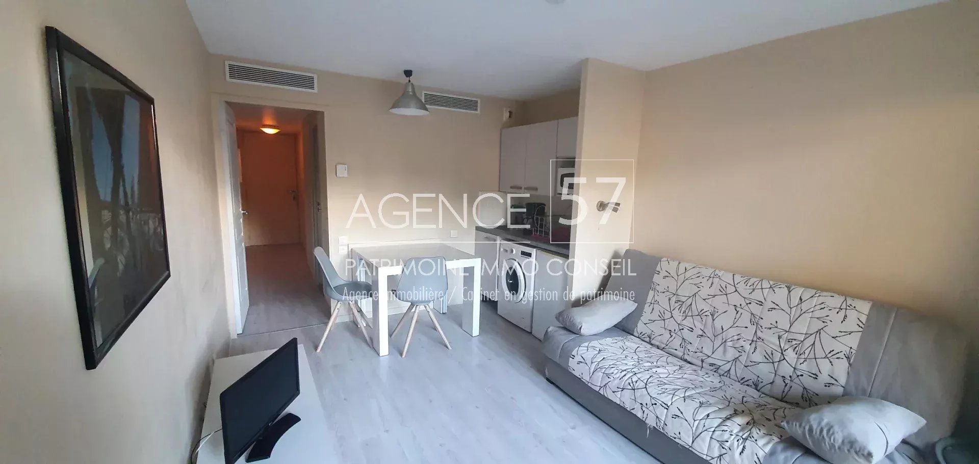Centre ville Cannes la bocca, à deux pas des plages et de l'université résidence avec piscines, joli 2P rénové de 27m² comprenant entrée avec placards, salle de douches avec toilettes, kitchenette équipée et séjour ouvrant sur terrasse au calme, expo Ouest, IDEAL INVESTISSEMENT! vendu loué ou pas.