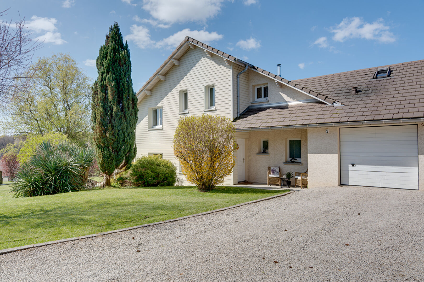 L'agence INNOV IMMOBILIER vous présente en exclusivité cette propriété familiale. (à 15 minutes d'école valentin !) D'environ 173m² habitable, elle à été édifiée en 2003 sur les hauteurs de Montboillon . Elle est composée au premier niveau : d'un grand hall d'entrée avec placard, d'une chambre, avec dressing, d'une salle d'eau, d'un wc, d'une buanderie, d'une spacieuse pièce de vie baignée de lumière, ainsi que d'une cuisine avec accès terrasse. A l'étage nous retrouverons 2 chambres ainsi qu'un wc, salle de bain, une mezzanine et un bureau conduisant à une salle de jeux pouvant faire office de chambre. Le tout sur une parcelle d'environ 32 ares de terrain constructible sans aucun vis-à-vis. En annexes : double garage avec portes motorisées, piscine hors-sol, cabanon de jardin et carport ! Idéal pour une famille en quête d'un cadre bucolique dans le calme absolu.