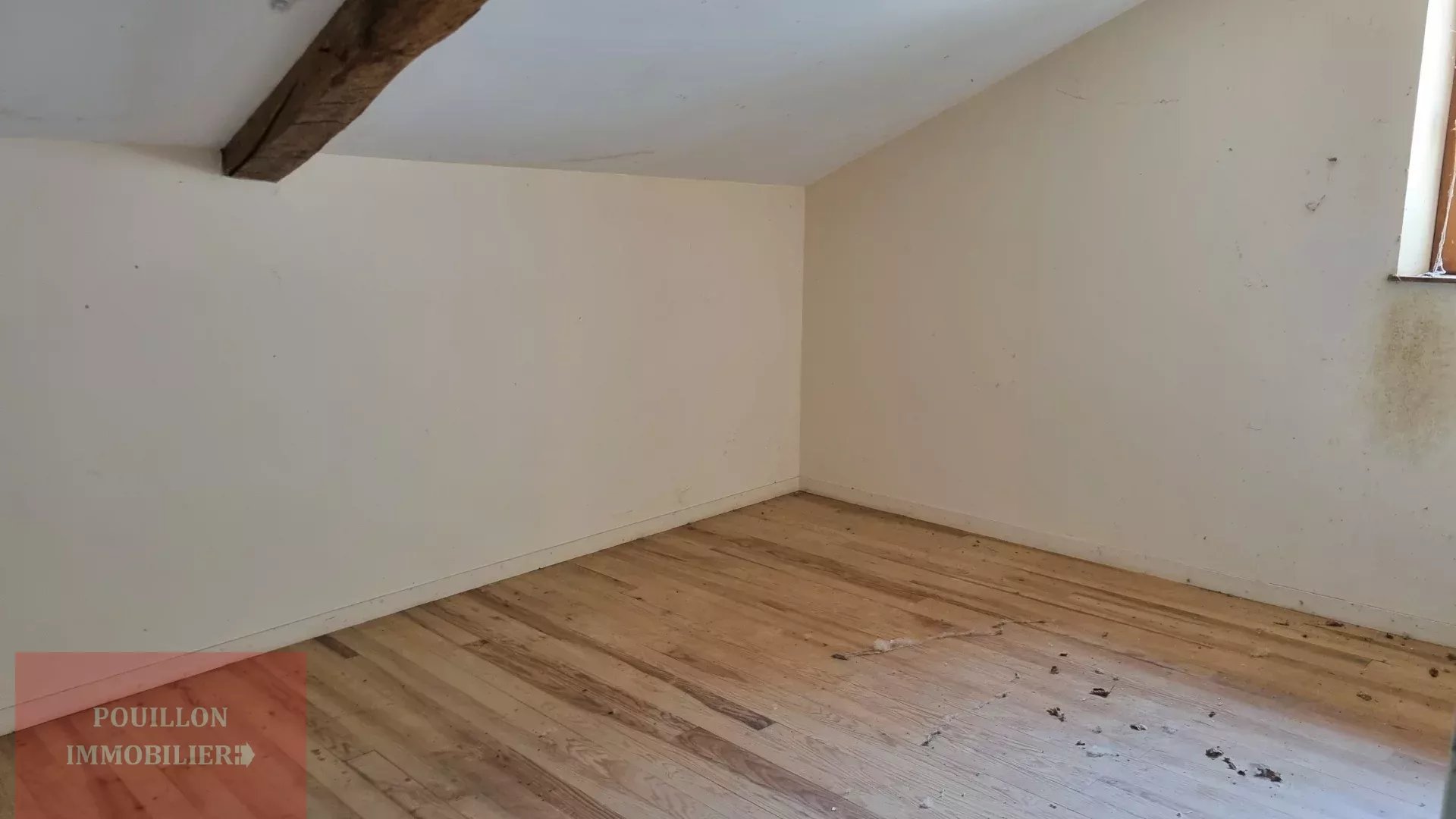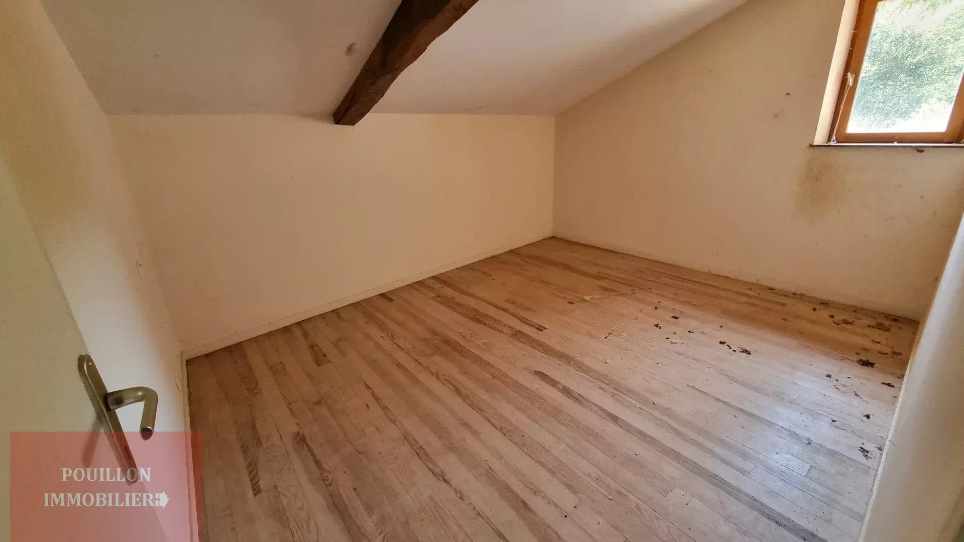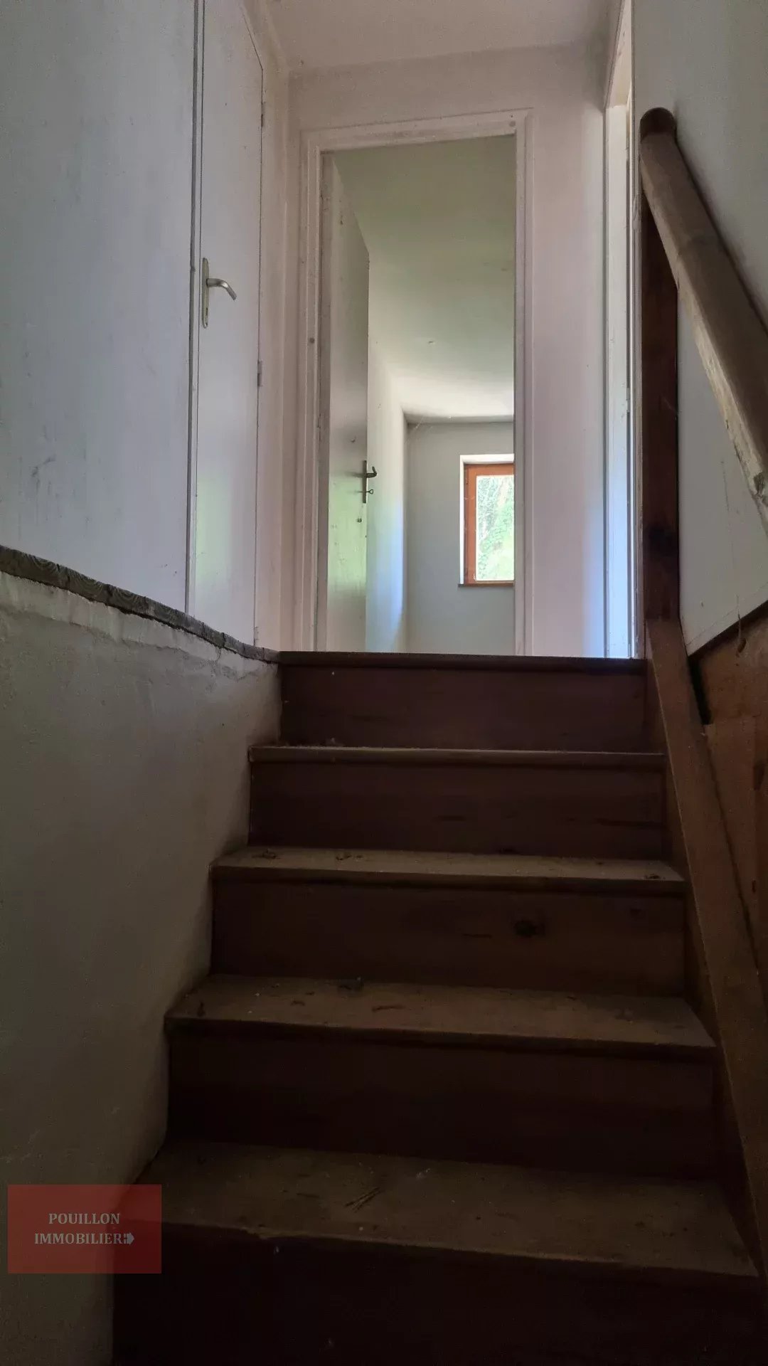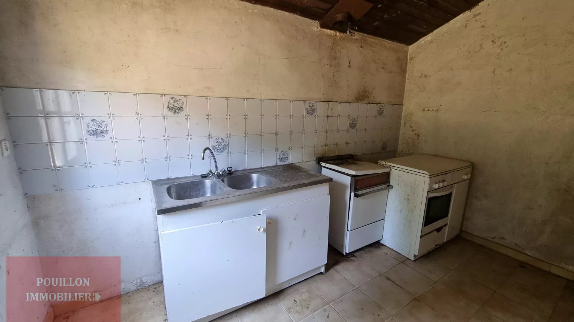 Dans le village de POUILLON, près du bourg mais cachée dans la nature, Maison d’habitation de 82 m² à rénover entièrement sur demi-niveau comprenant au RDC : entrée, séjour, cuisine, ½ niveau : 1 grande pièce, 1 bureau, salle d’eau, wc. Etage : 2 chambres mansardées – Cave - Dépendance en pierre 20 m² - L'ensemble sur terrain en zone naturelle 1,3 hectare.