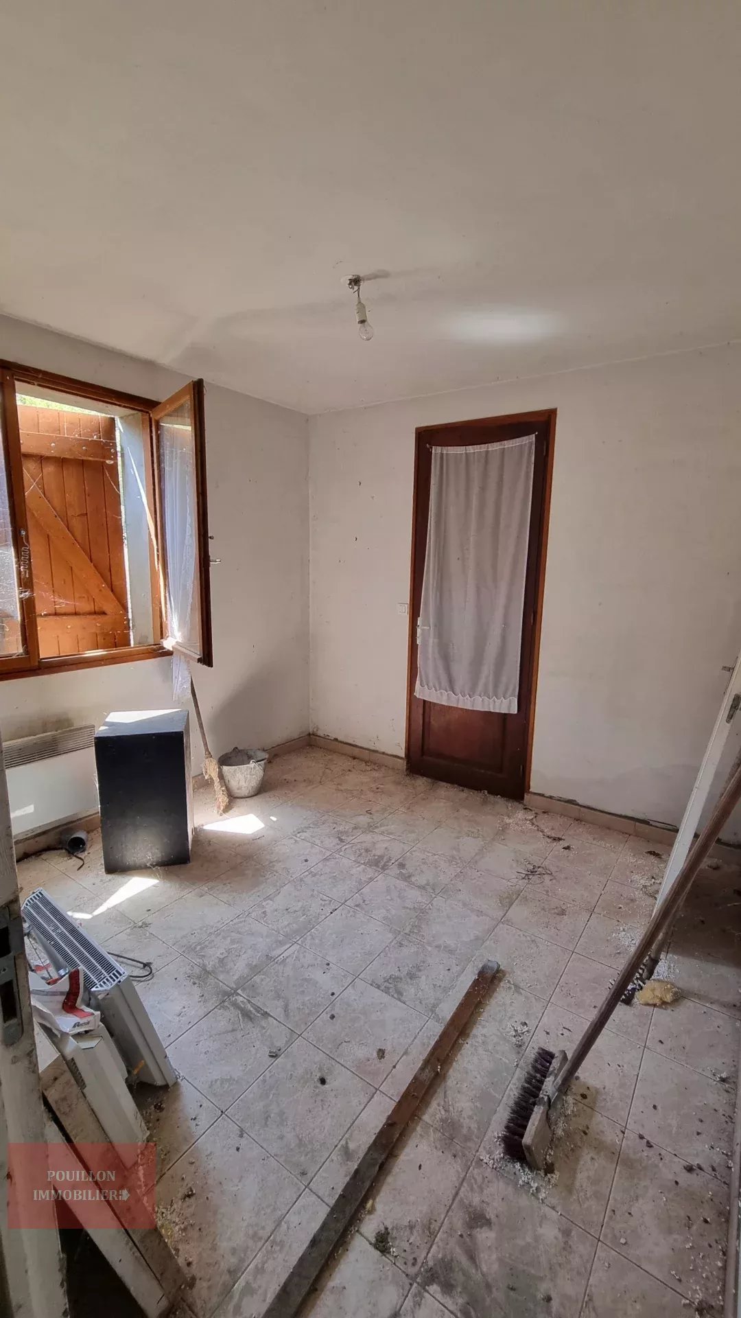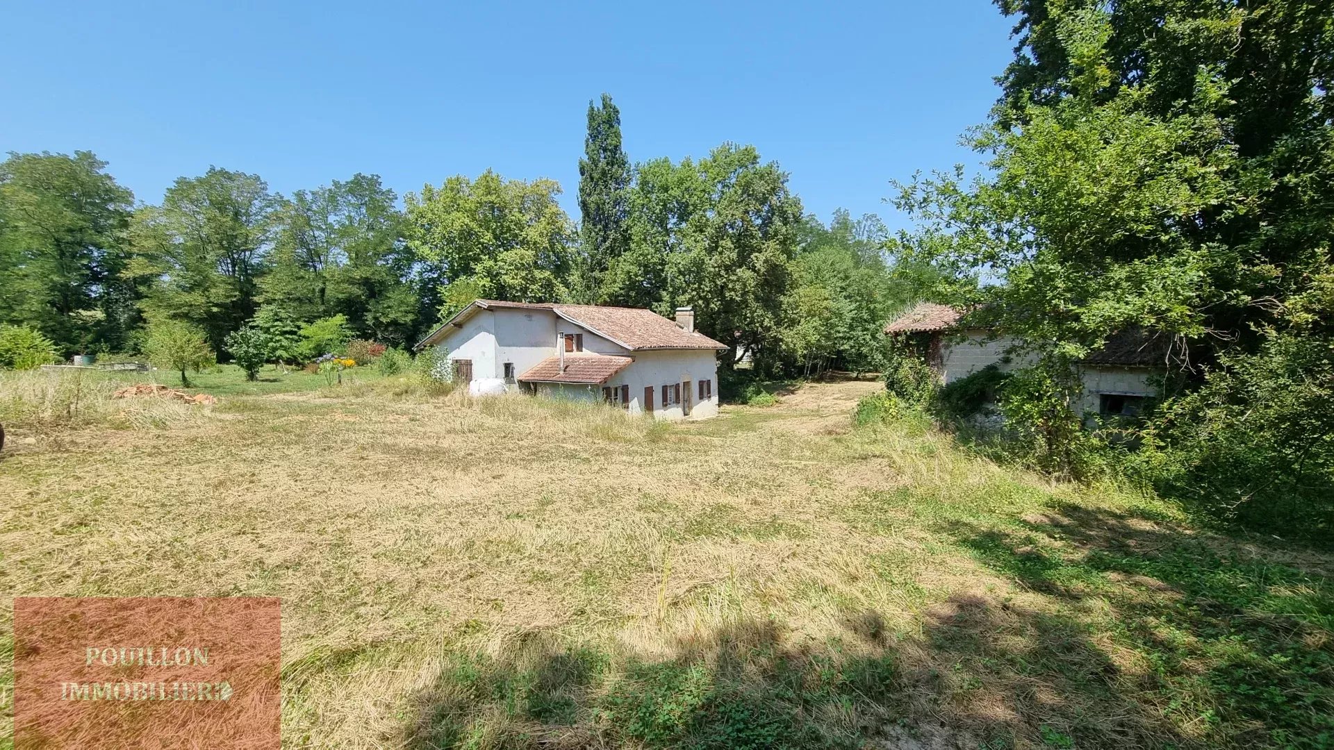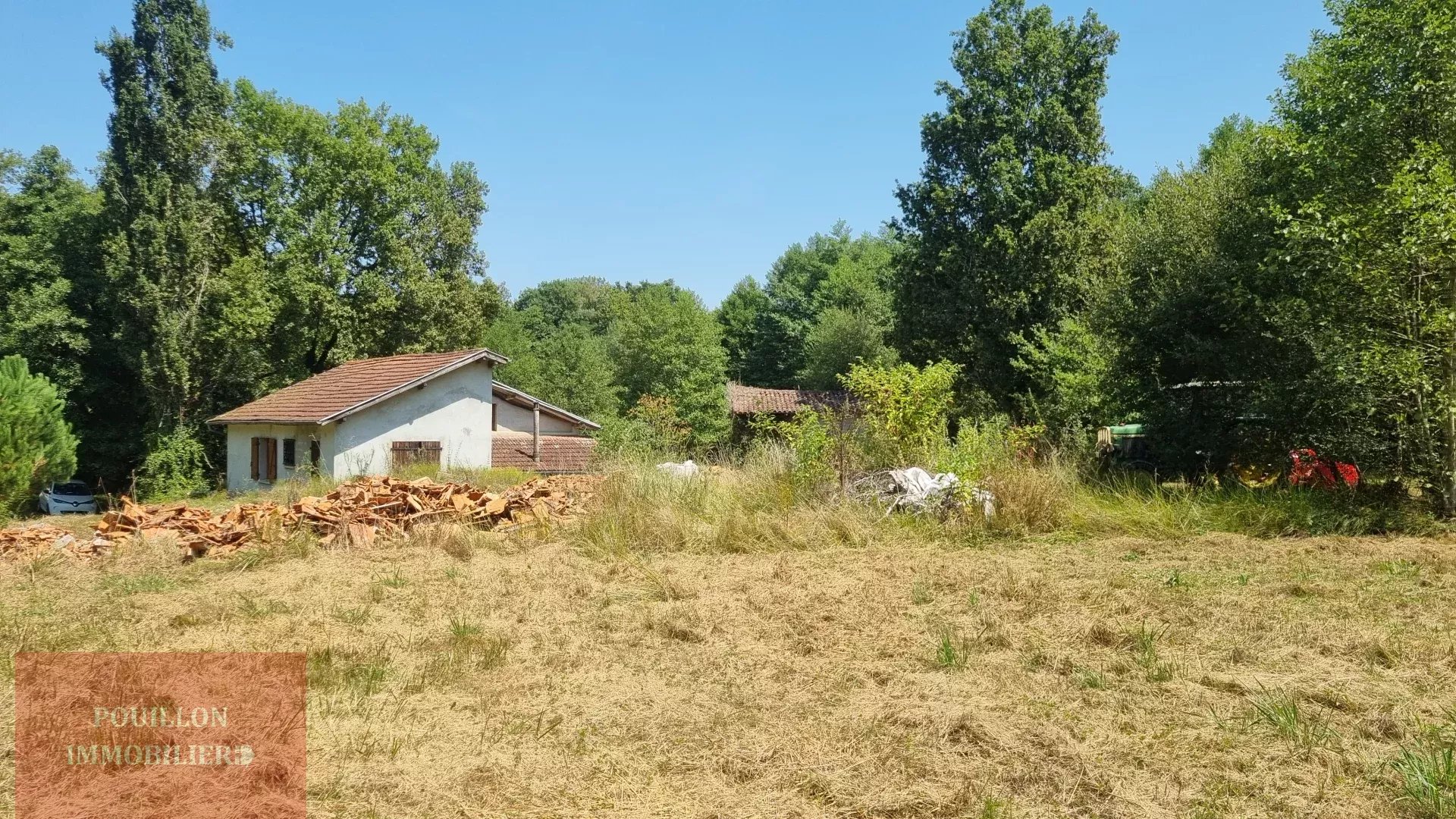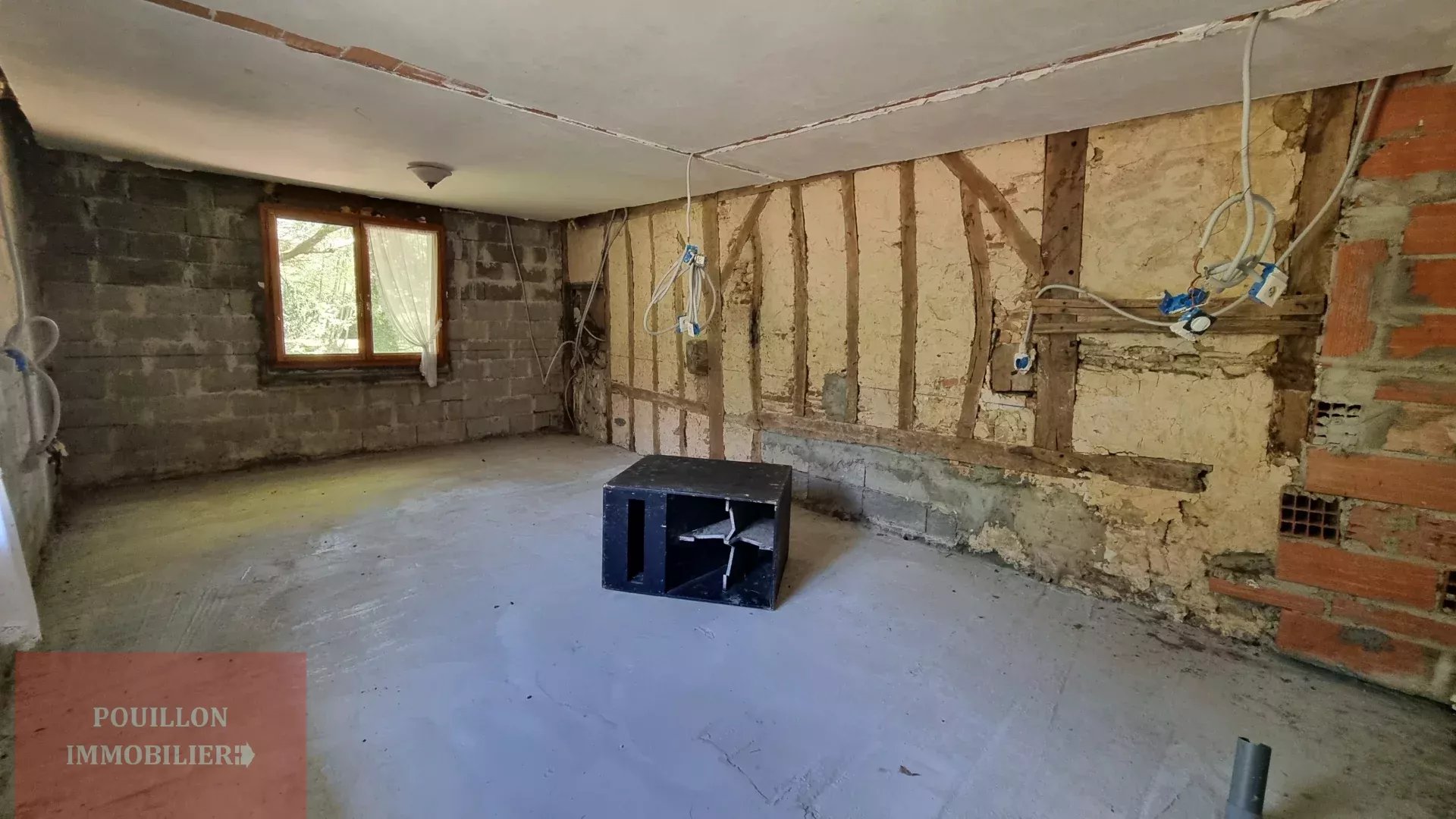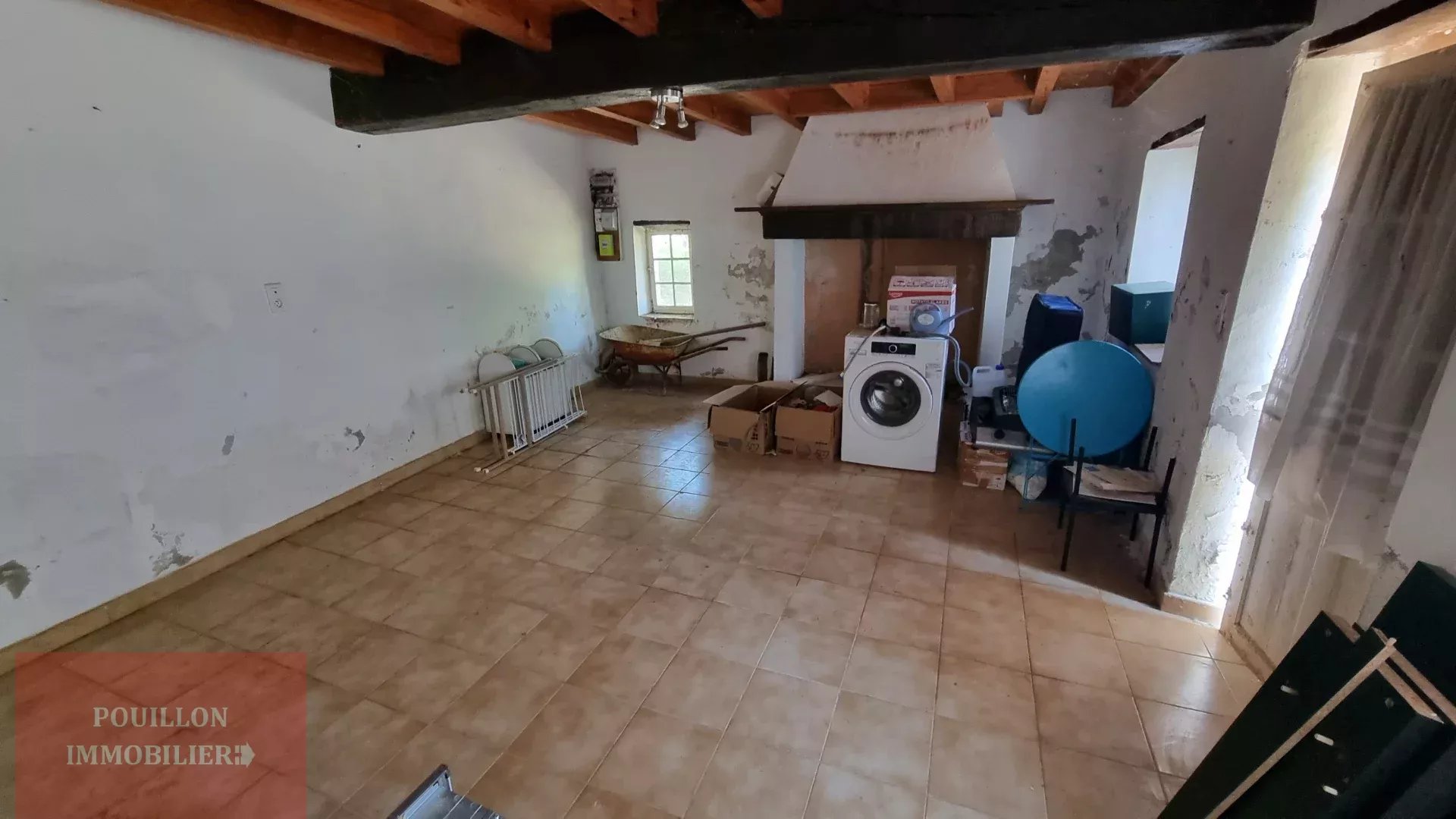 Dans le village de POUILLON, près du bourg mais cachée dans la nature, Maison d’habitation de 82 m² à rénover entièrement sur demi-niveau comprenant au RDC : entrée, séjour, cuisine, ½ niveau : 1 grande pièce, 1 bureau, salle d’eau, wc. Etage : 2 chambres mansardées – Cave - Dépendance en pierre 20 m² - L'ensemble sur terrain en zone naturelle 1,3 hectare.