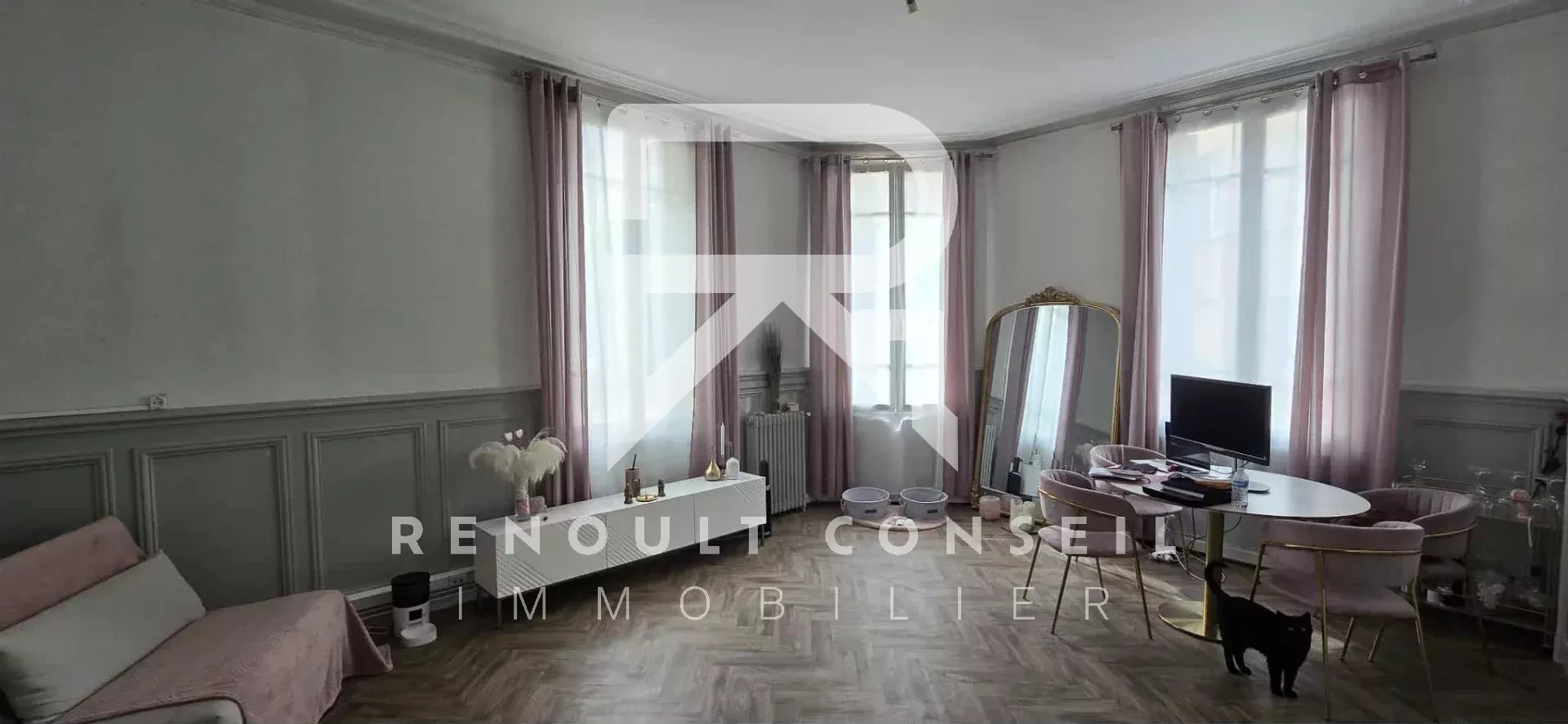 - un séjour de 27m²avec 3m sous plafond et de jolies moulures qui rappellent l'esprit d'époque.