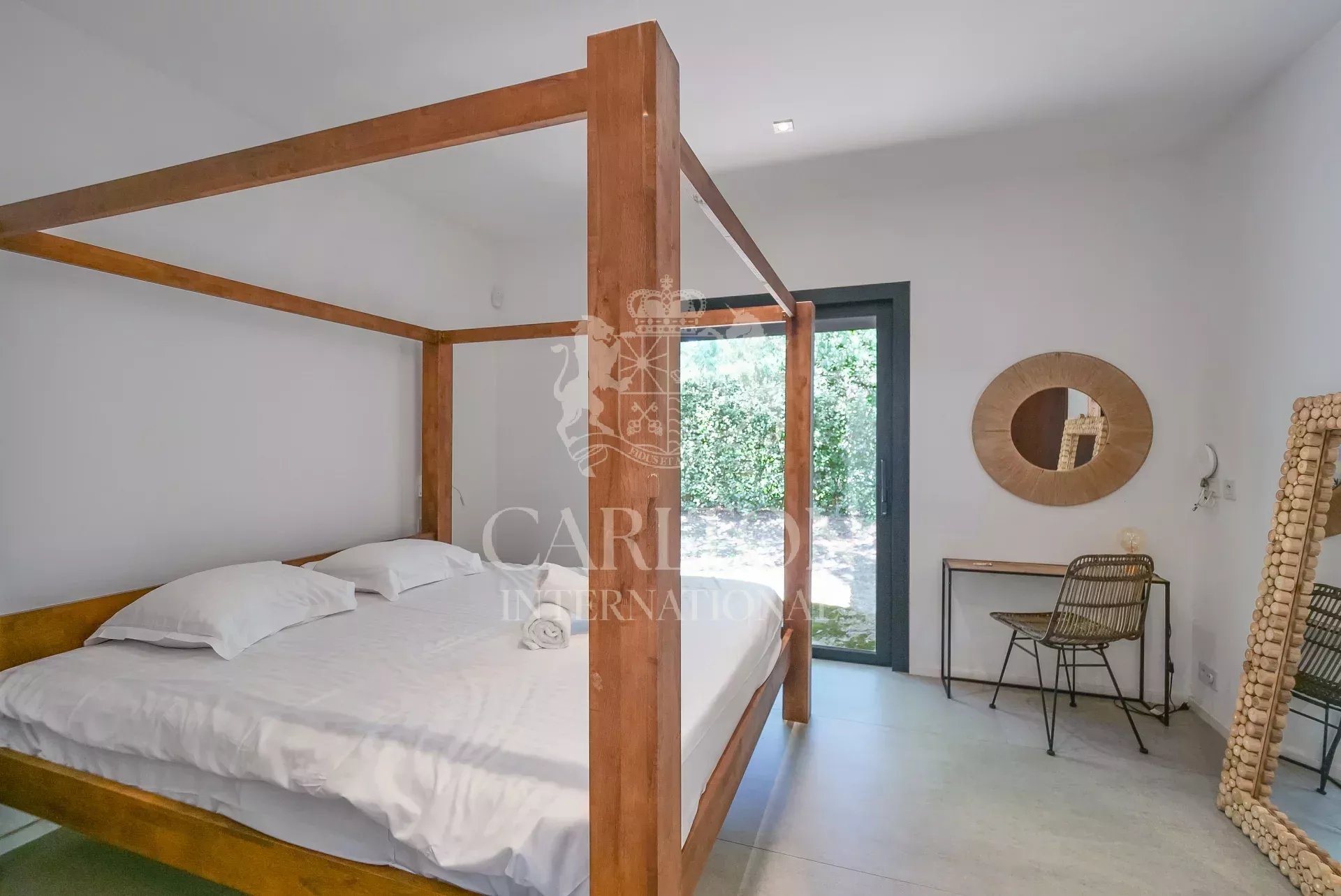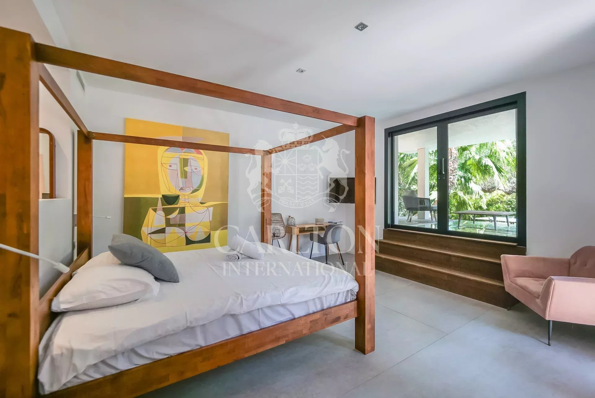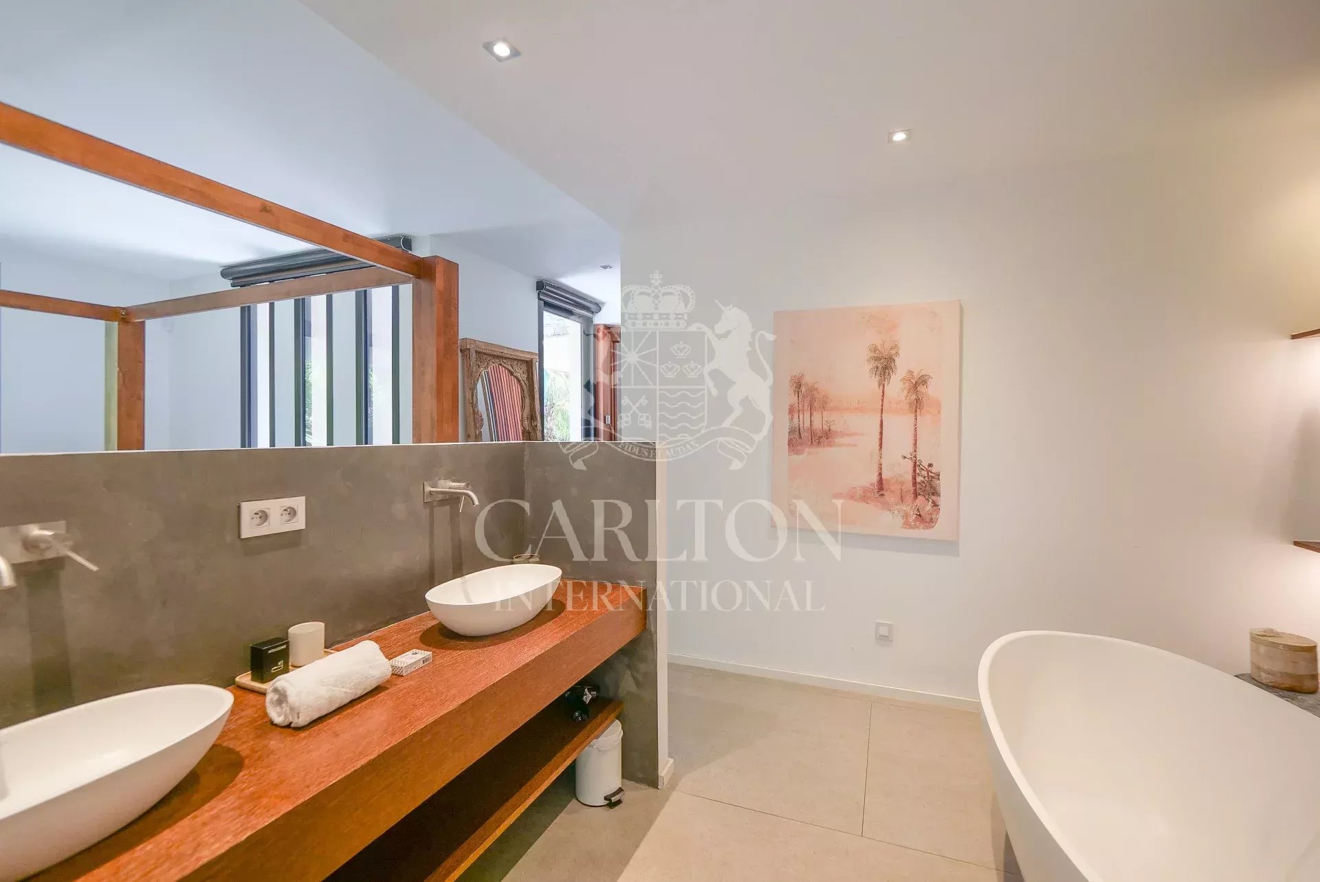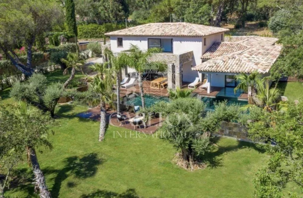 Situata in una delle zone più ricercate di Saint-Tropez, questa villa contemporanea di circa 325 m² offre un ambiente di vita elegante, tranquillo e davvero esotico. Costruita nel 2018 su un terreno paesaggistico di 2.270 m², combina comfort moderno, linee pulite e ispirazione esotica. Fin dall'ingresso, sarete accolti da una cucina a pianta aperta e da un vasto soggiorno passante, che si apre su un patio con piscina da un lato e su una generosa terrazza in teak dall'altro, che conduce a una sontuosa piscina in stile balinese che è un vero e proprio invito al viaggio. La suite padronale, con accesso diretto alla piscina, promette privacy e comfort assoluto. Altre quattro camere da letto si trovano al piano terra, mentre il primo piano ospita tre camere da letto con bagno privato, ognuna con la sua terrazza privata. Il garage parzialmente vetrato permette di vedere la propria auto dal patio, elegantemente integrato nell'architettura contemporanea. Il giardino con palme, i materiali naturali e gli ambienti luminosi conferiscono a questa proprietà uno stile di vita chic ed esotico, a pochi minuti dal centro di Saint-Tropez. Rif. 11825