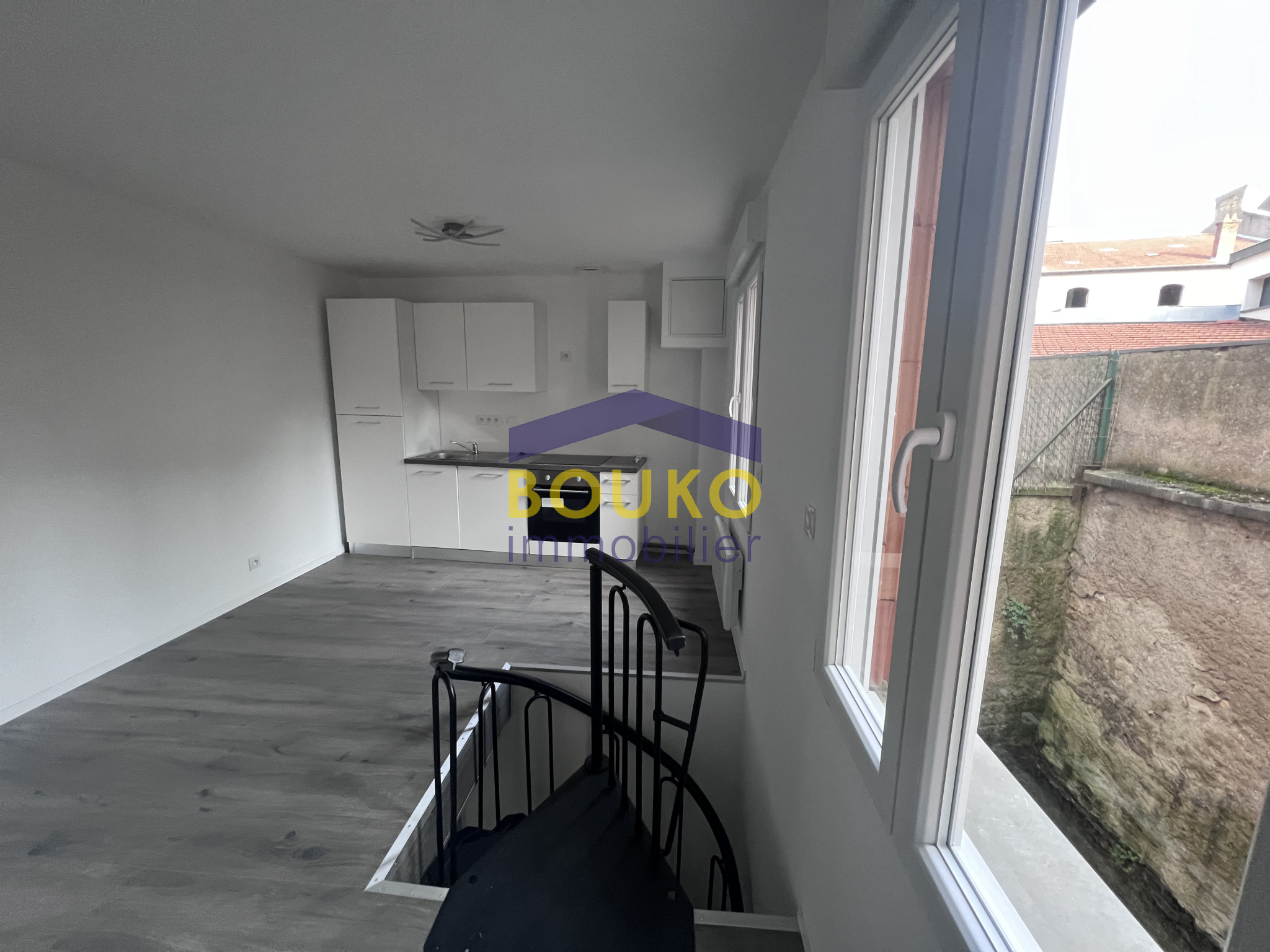 NANCY - Quartier Lobau : Appartement T2 souplex avec terrasse privative, en rez-de-chaussée, comprenant 1 salon-séjour, 1 cuisine équipée, 1 chambre, 1 salle de bain et 1 WC, 1 terrasse. Libre de suite. Loyer : 560 EUR + 30 EUR de charges. FA : 500 EUR.