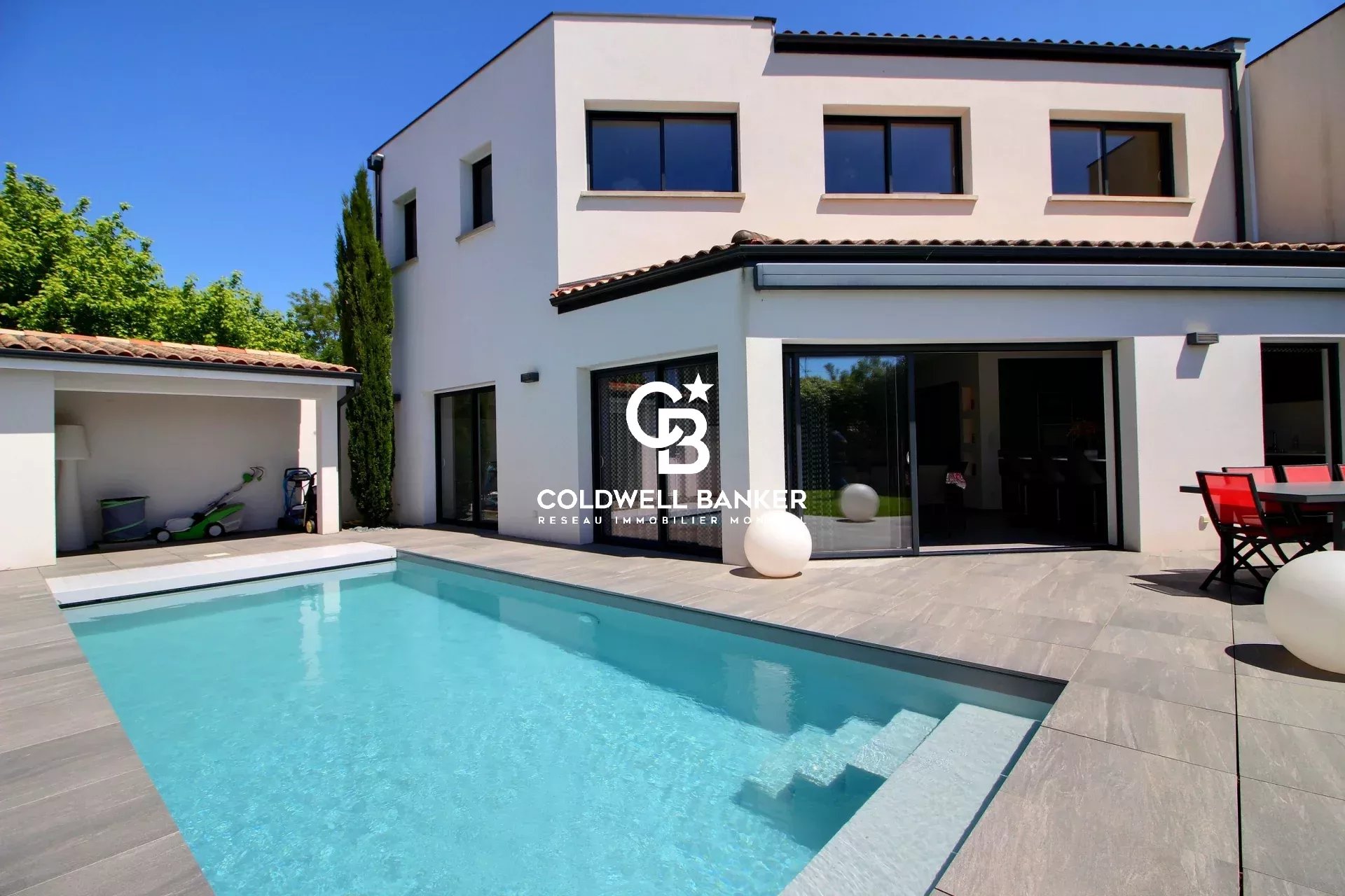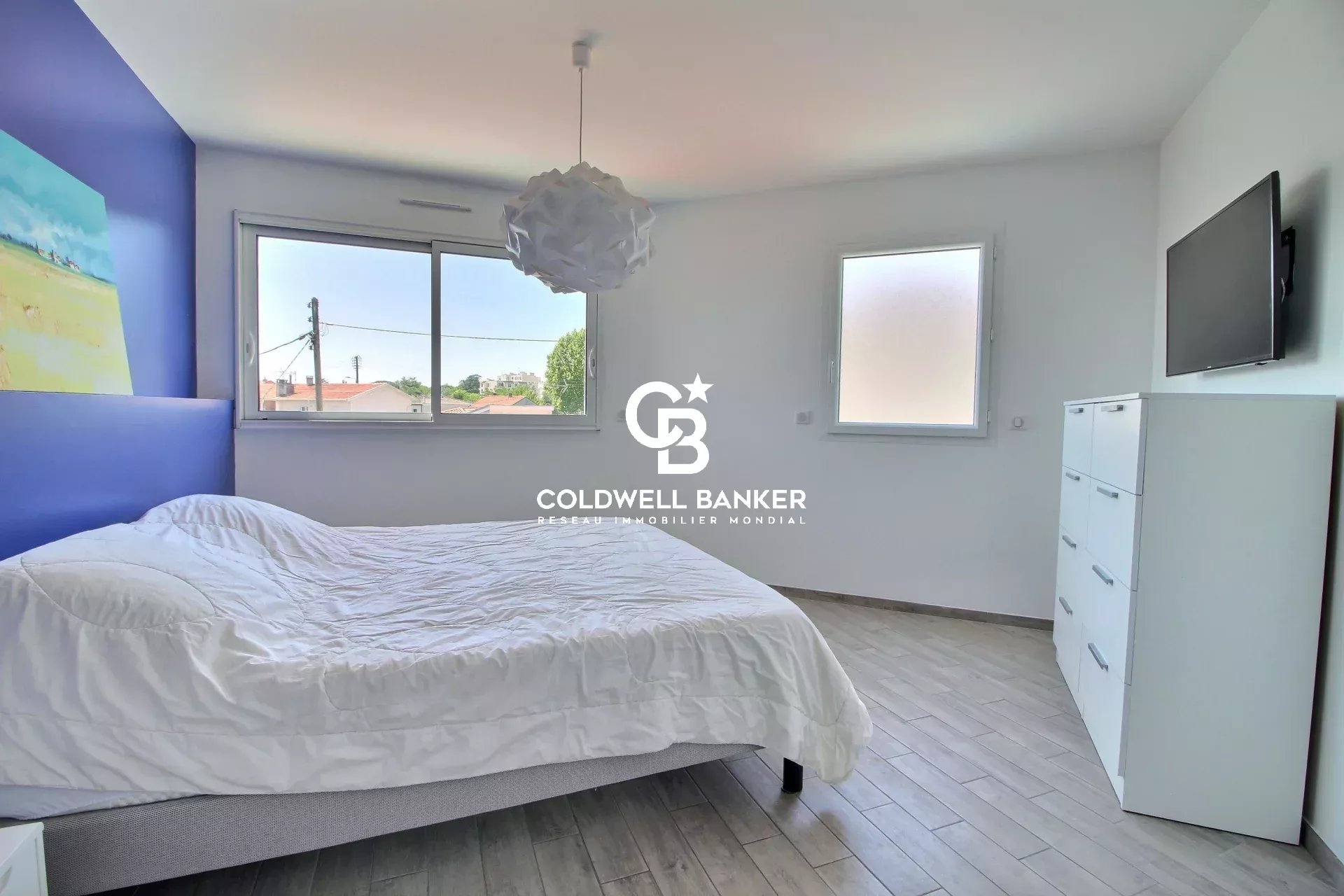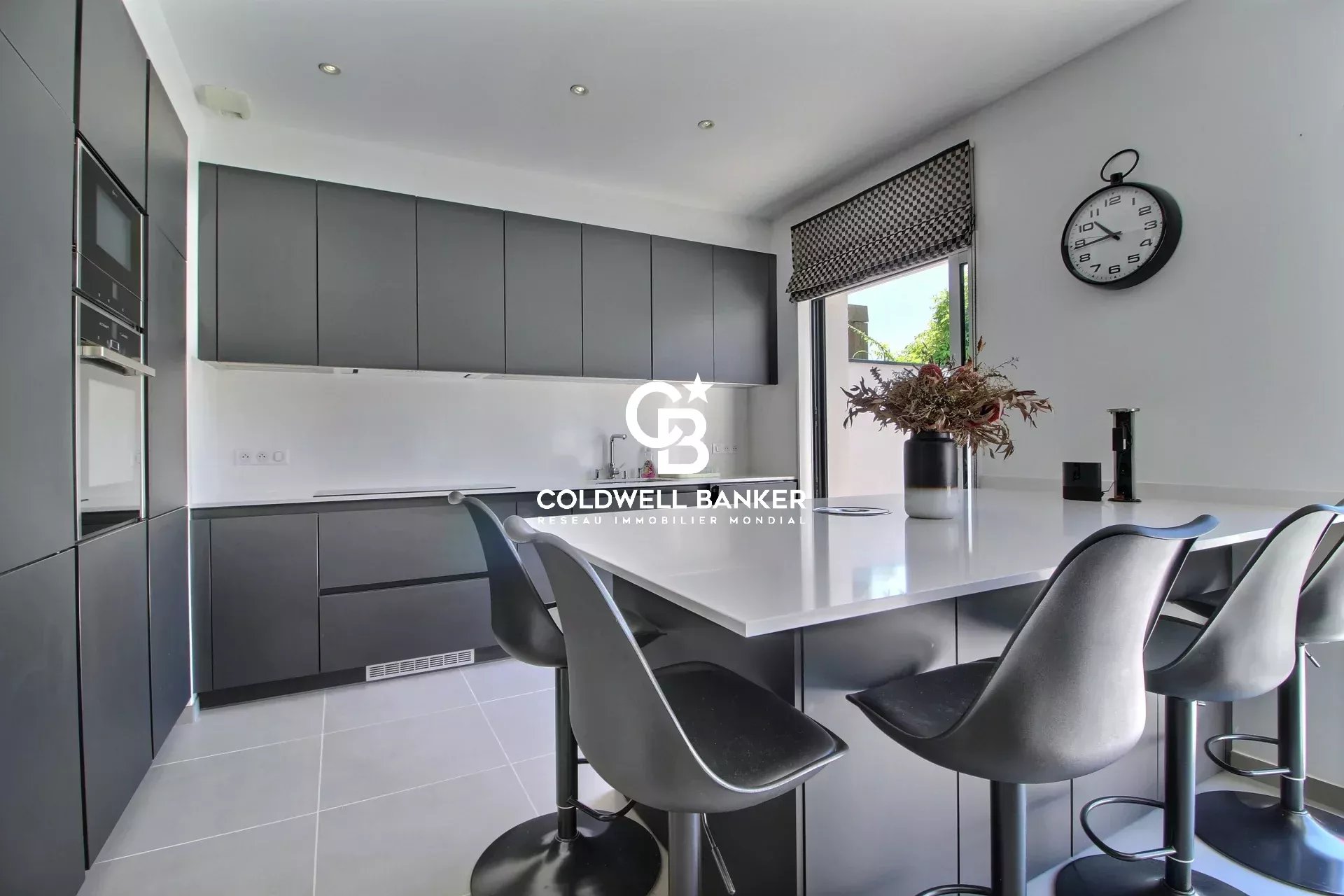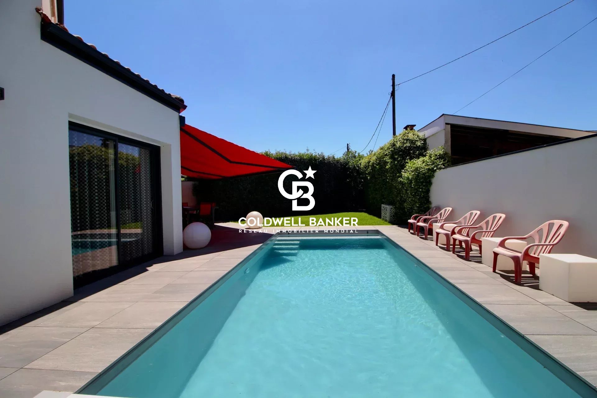 L'agence Coldwell Banker spécialiste de l'immobilier de prestige à Bordeaux et ses environs vous propose de découvrir en exclusivité cette villa d'environ 195m² située dans une impasse paisible et recherchée du Bouscat, construite en 2017, elle offre une harmonie parfaite entre confort moderne et cadre de vie privilégié. Elle se compose d'un séjour cuisine spacieux donnant directement sur une terrasse exposée sud, idéal pour recevoir famille et amis en toute convivialité. Côté nuit, la villa dispose de cinq chambres dont une suite parentale avec salle de bains privative et dressing, pour un confort optimal. Elle est dotée de plusieurs équipements de qualité, cuisine équipée haut de gamme, chauffage au sol, climatisation réversible, une cheminée, une cave, piscine chauffée au sel, un garage. Cette propriété haut de gamme bénéficie de prestations de qualité supérieure et d'un aménagement intérieur soigné. Son architecture élégante, aux lignes épurées, s'intègre parfaitement dans son environnement calme et verdoyant. DPE A (43) et GES A (5) Estimation des coûts annuels d’énergie du logement: 660€ - 960€ Honoraires à la charge du vendeur. Agent Commercial Indépendant RSAC : 828362285 / RCP : 127100479 contactez Stéphane Laroche dès maintenant pour organiser une visite Retrouvez tous nos biens sur IMMOBA.