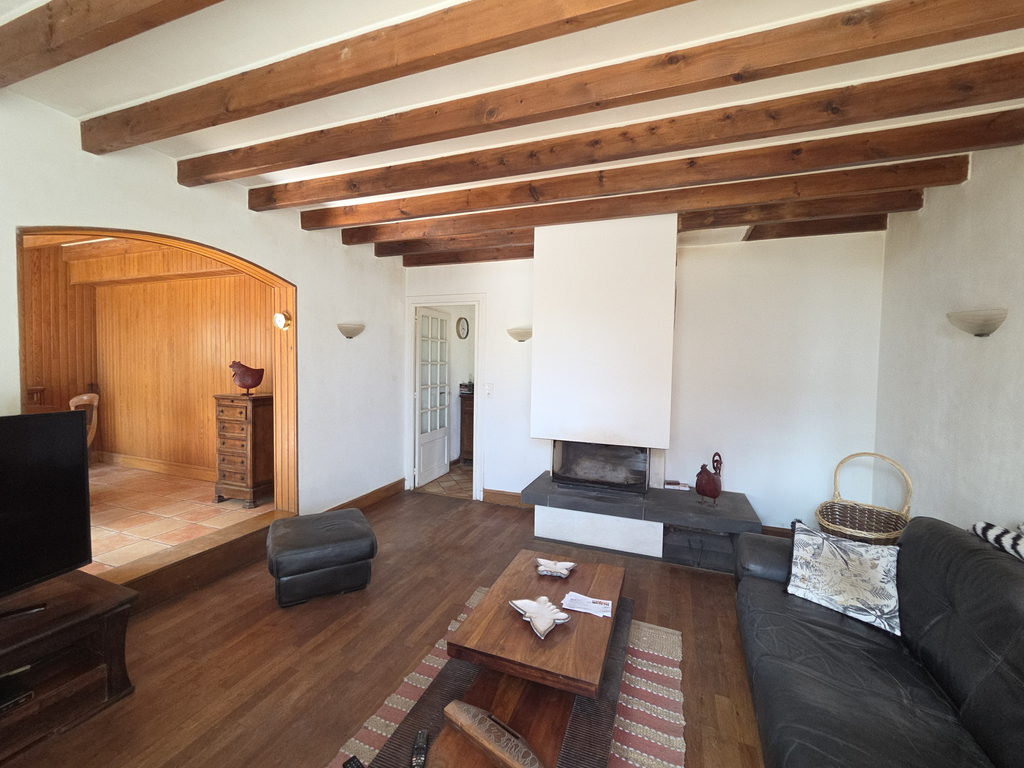 La partie habitable est composée d'une agréable cuisine aménagée et équipée avec coin repas de 15m 2, un séjour/salon lumineux avec cheminée ( foyer fermé ) de 32 m2, de 3 chambres, une salle d'eau, 2 wc et une buanderie .