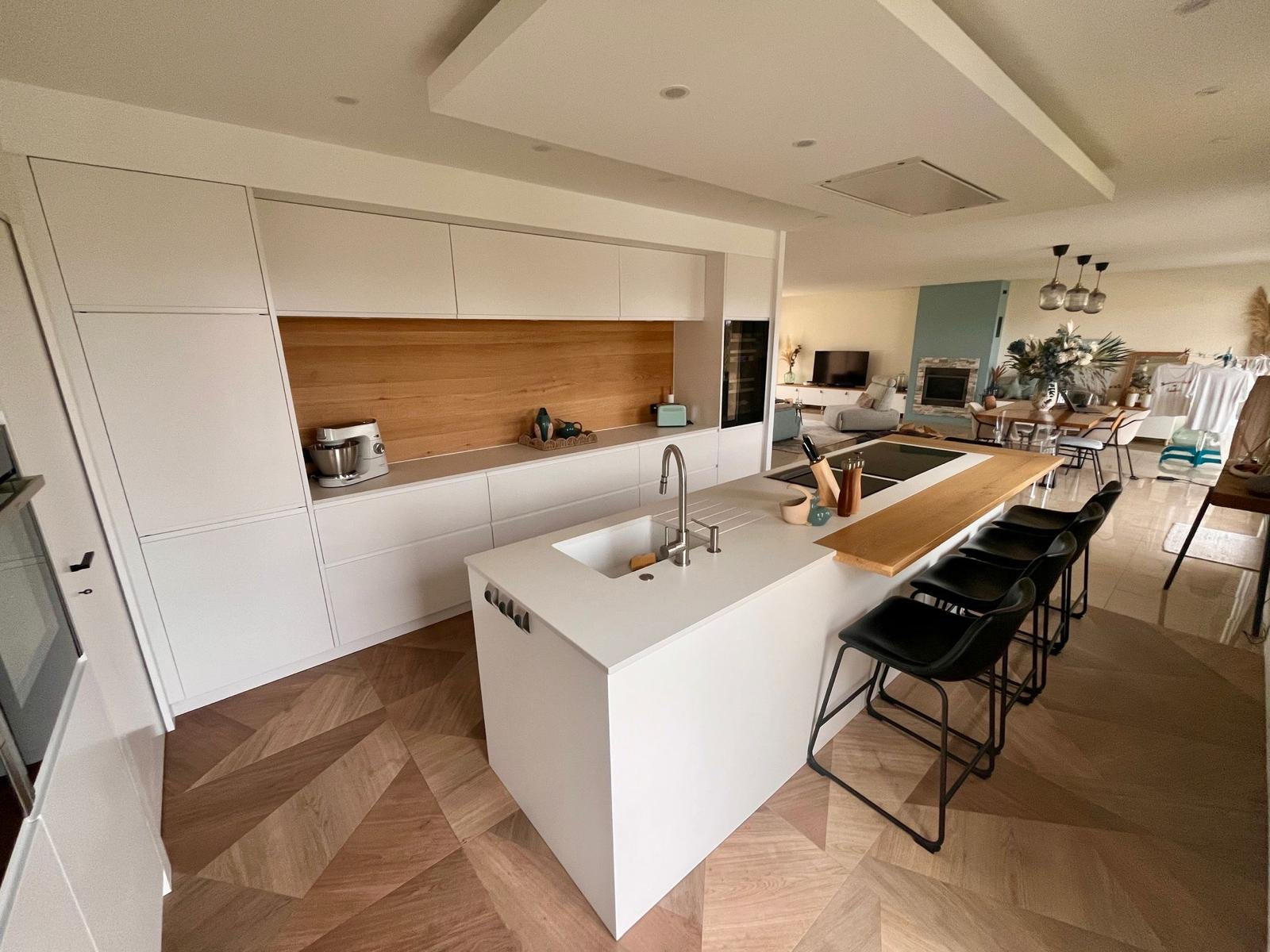 Le rez-de-chaussée (norme PMR) se compose d'une belle entrée desservant une vaste pièce de vie lumineuse (74 m2) avec cuisine ouverte sur le séjour, entièrement équipée en électroménager haut de gamme. Idéal pour les amateurs de cuisine et les moments de partage en famille ou entre amis.