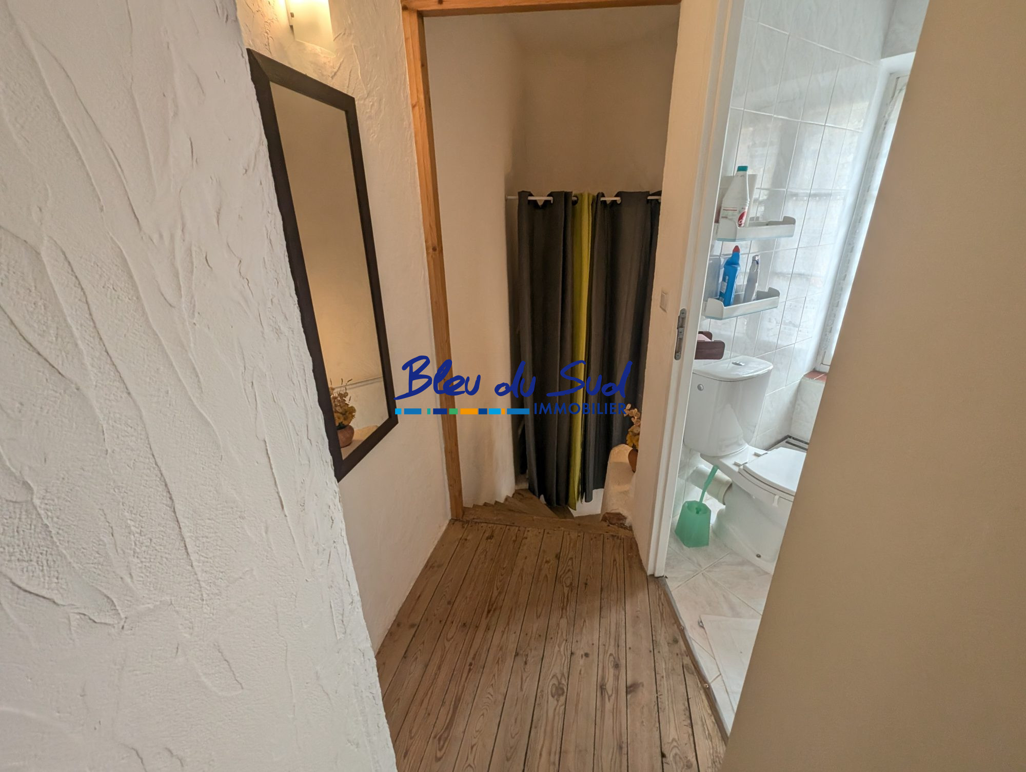 d'une entrée, d'une chambre, d'une salle d'eau avec WC et coin machine à laver.