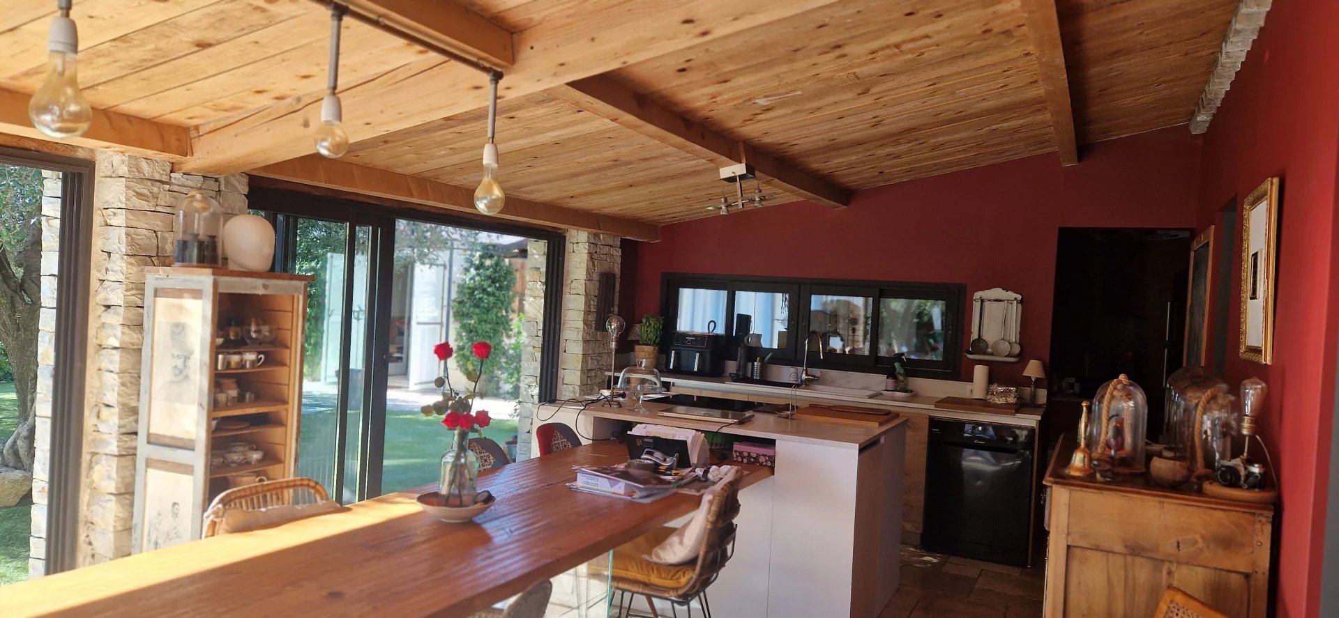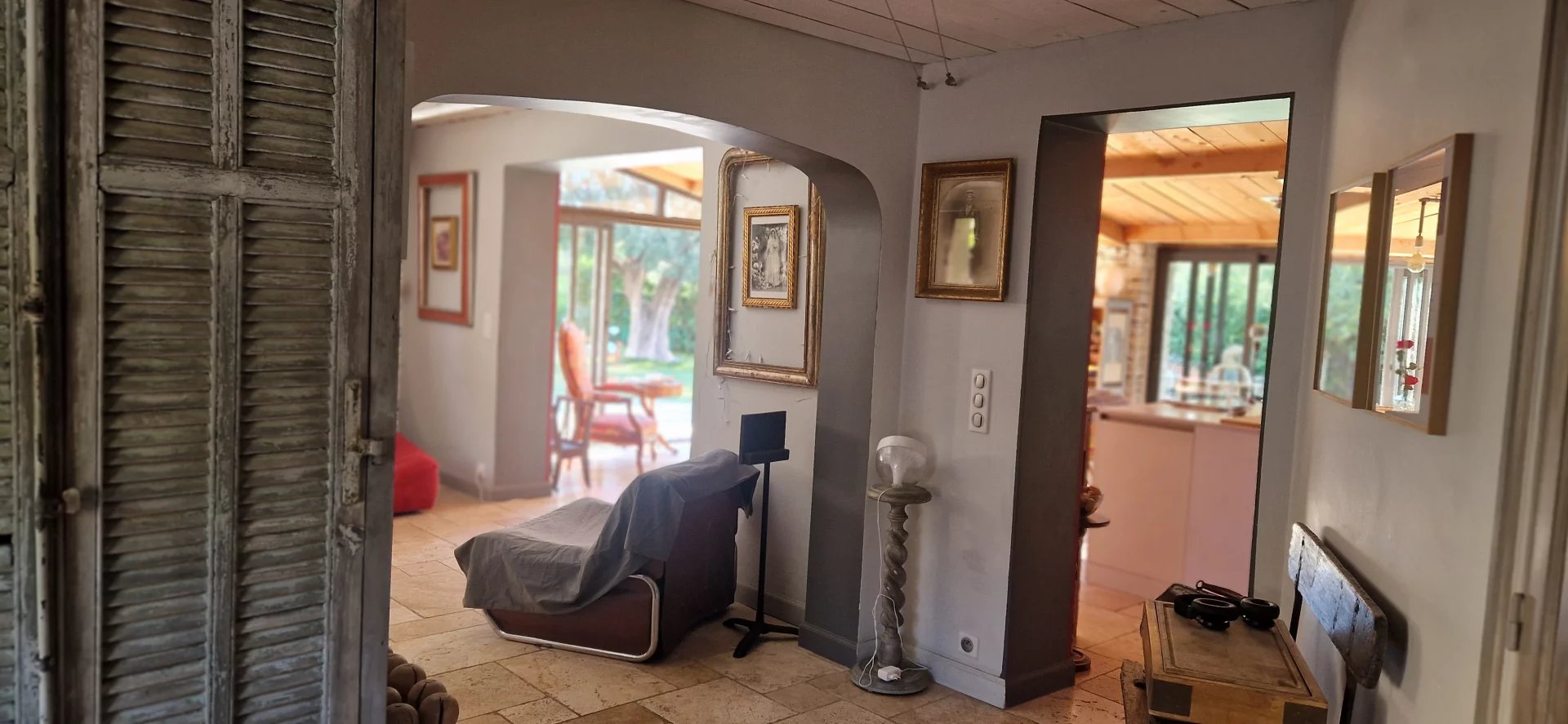 Charmante villa sur 1460m2 de jardin plat avec piscine, offrant 208m2 habitables: un bel espace de vie salon avec cheminée insert, salle à manger avec cuisine ouverte, Chambre parentale avec salle de douche, wc, 2 autres chambres avec chacune sa cuisine et sa salle de douche. un bureau+espace couchage, un studio indépendant, une salle de musique ou salle de sport, atelier, buanderie. Cette maison offre de nombreuses possibilités: idéale pour recevoir sa famille, exercer une activité professionelle, ou une activité de chambres d'hôtes.