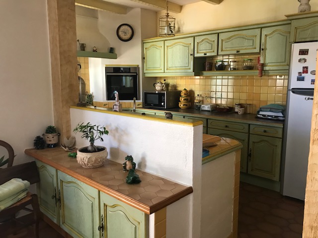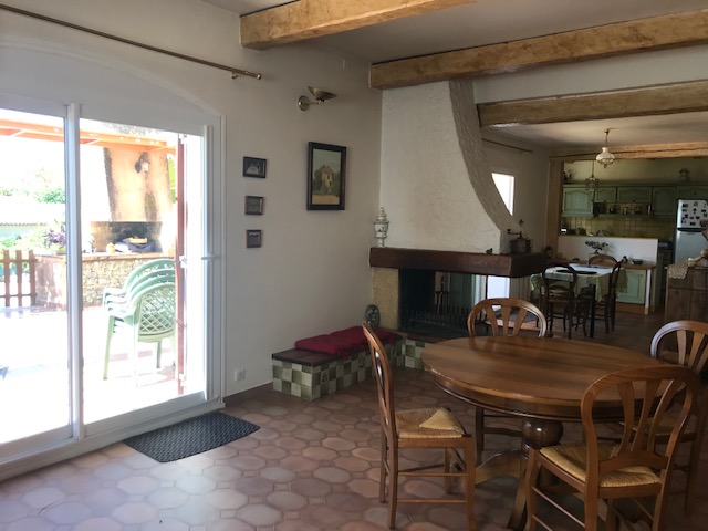Construction traditionnelle sur vide sanitaire, entretenue à la perfection, cet appartement se compose en RDC d’un hall d’entrée desservant une cuisine aménagée provençale (13 m2) ouverte sur grand séjour/salle à manger (45 m2 environ) (cheminée ouverte) et poutres au plafond - 1 chambre (8m2), au fil d’un couloir nous avons 1 WC indépendant, 1 buanderie avec point d’eau, 1 grande chambre parentale (15 m2) Une salle de bain (baignoire), un dégagement pour rejoindre le RDJ , 1 chambre (11 m2) ( avec accès au jardin) , 1 garage box. A l’étage 1 chambre 12m2 avec salle d’eau.