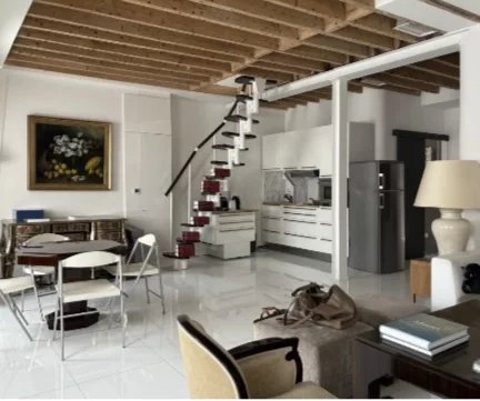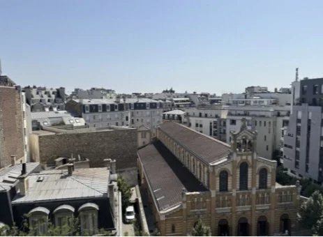 Il se compose d’une entrée ouvrant sur une vaste pièce de séjour avec salle à manger et cuisine ouverte, ainsi qu’une grande chambre avec salle d’eau attenante. Deux WC .Une mezzanine peut accueillir une seconde chambre .Baigné de lumière grâce à sa double exposition, cet appartement traversant offre une vue dégagée sur Paris et la tour Eiffel.