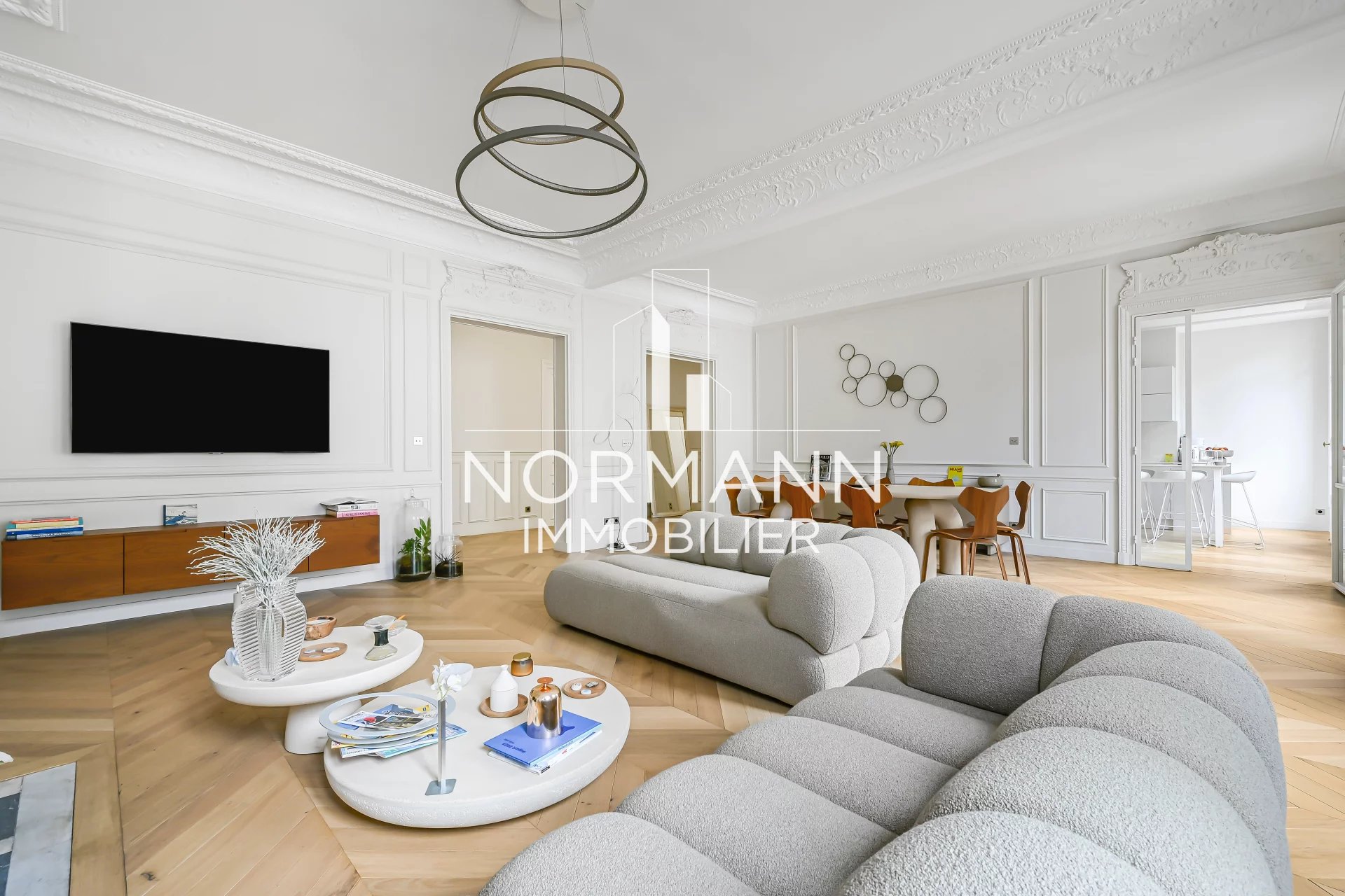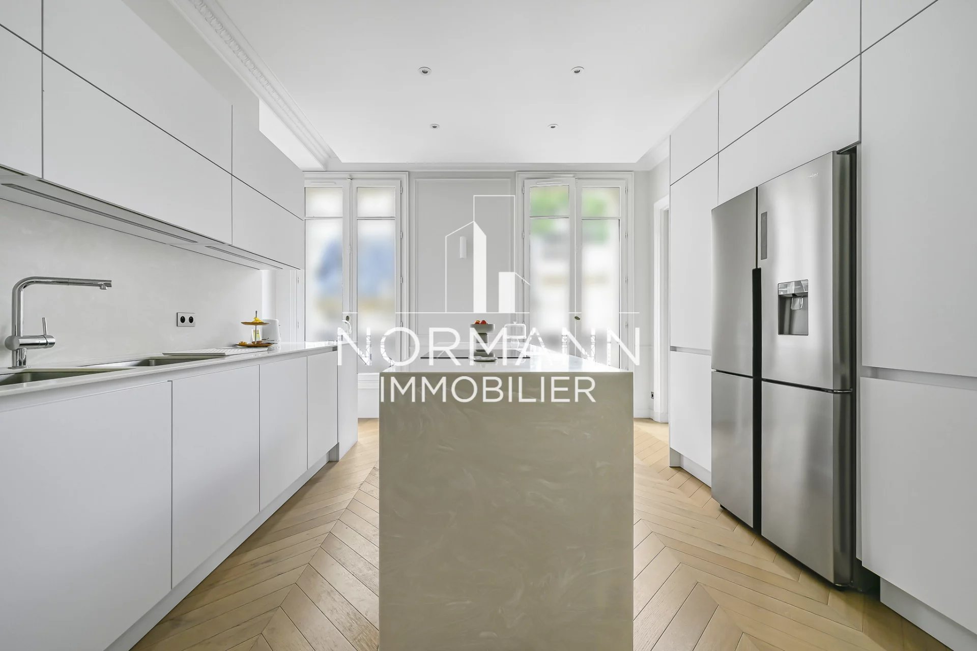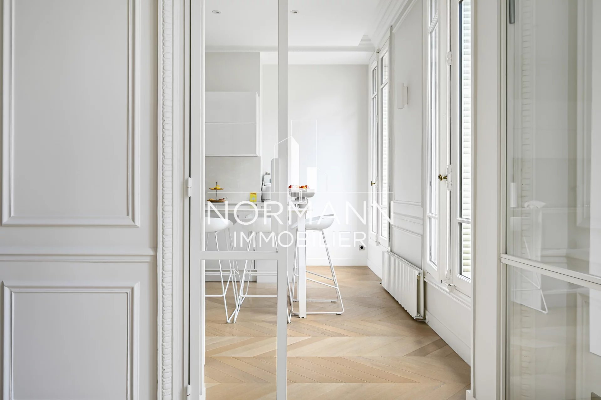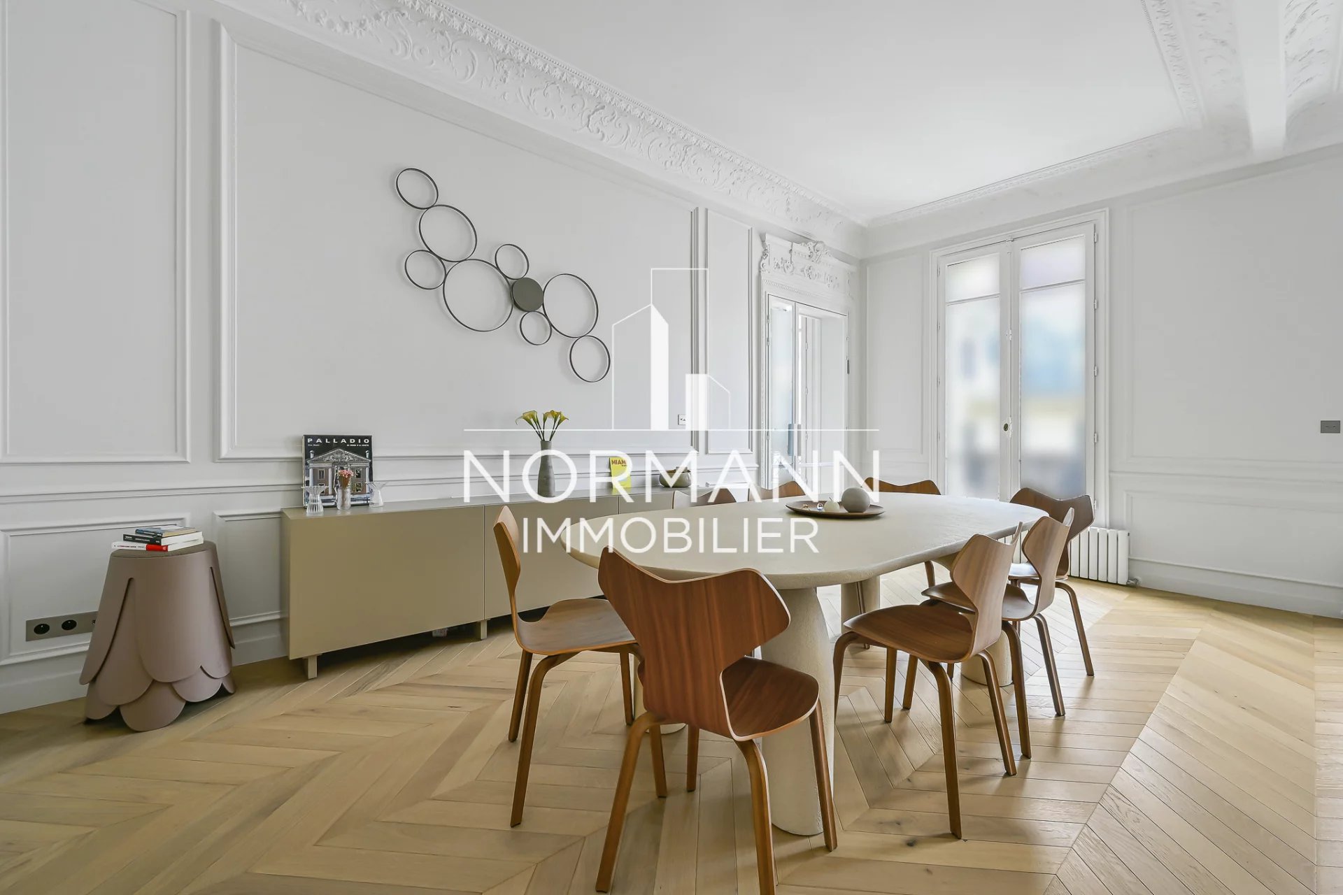 Appartement d'exception d'une superficie de 156 m2 entièrement rénové par architecte, situé dans un bel immeuble haussmannien de haut standing au 3ème étage avec ascenseur.
