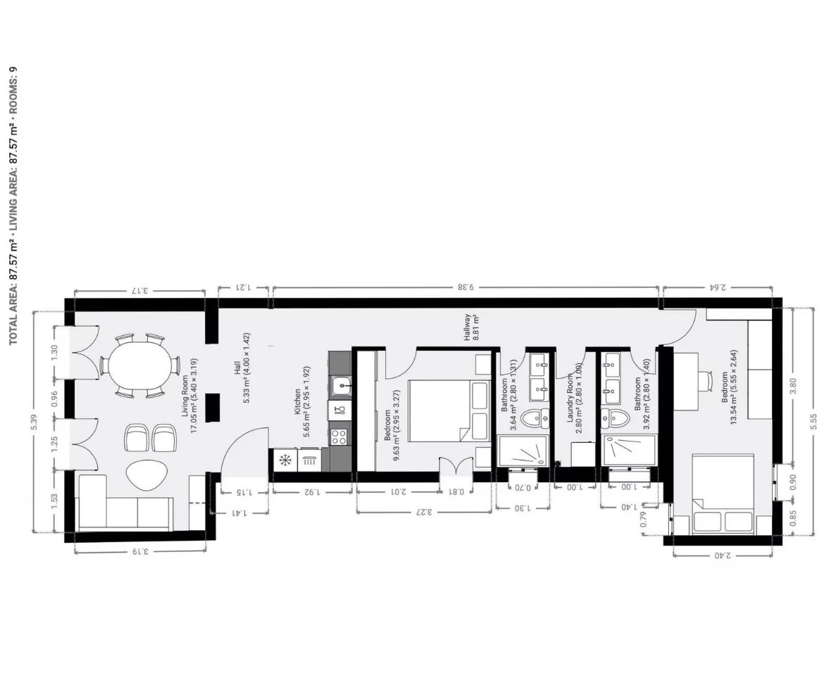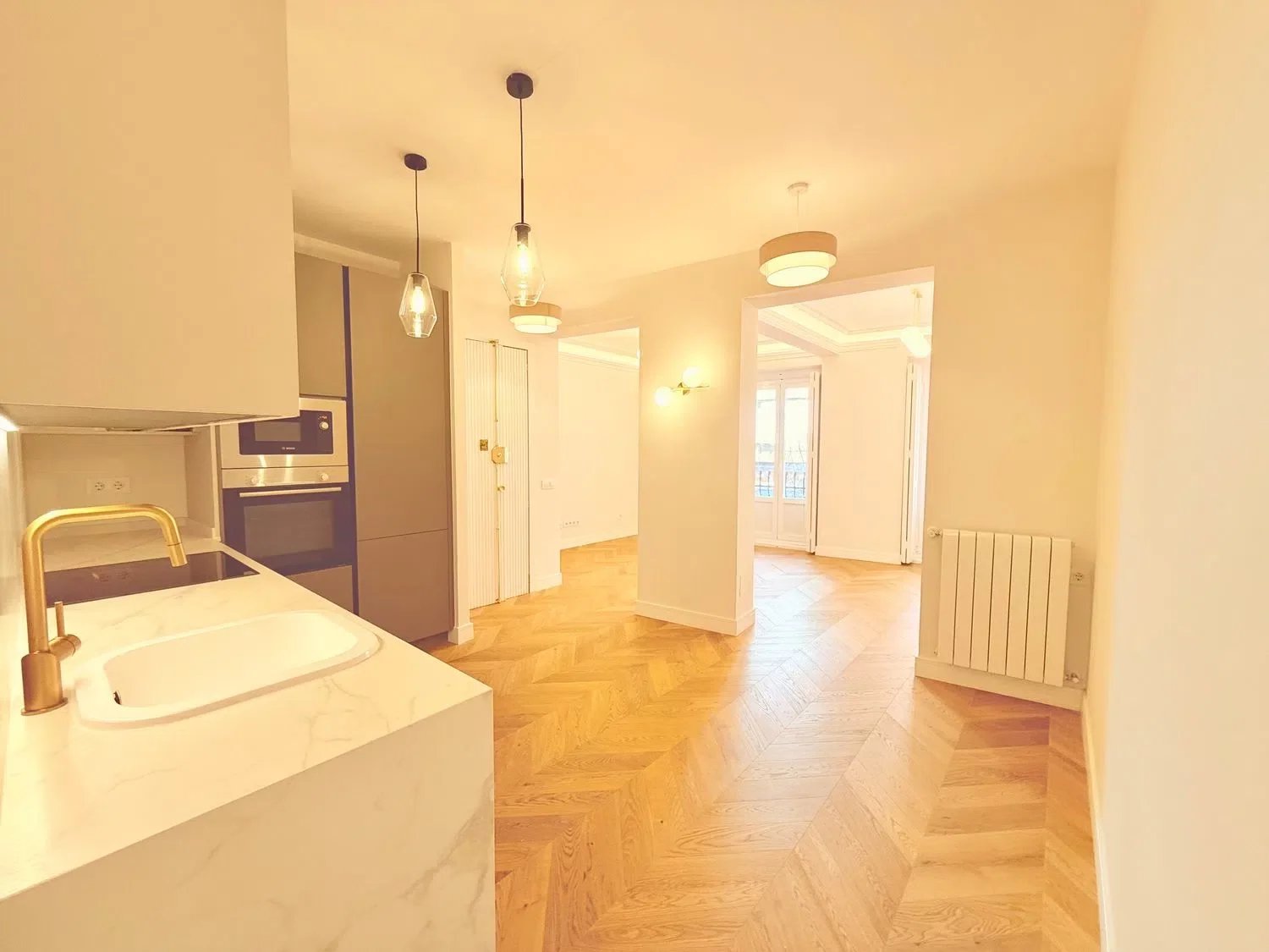 Veraltia offers this stunning brand-new apartment with high-end finishes. It features Hungary-point wood flooring, a fully equipped kitchen, ducted air conditioning, individual heating, a laundry room with utilities, and a storage room, all in a prime location in Chamberí.