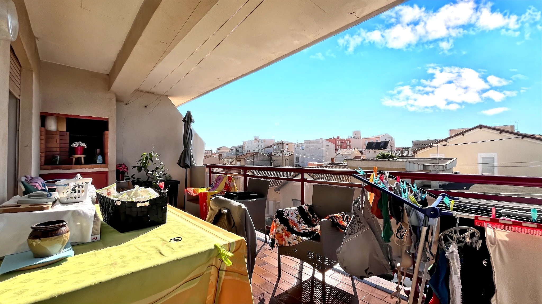 L'appartement se compose d'un salon-séjour lumineux donnant accès à une grande terrasse d'angle équipée d'un barbecue, d'une cuisine séparée, de deux chambres avec grands placards dont une avec balcon, d'une salle de bain et d'un WC indépendant.