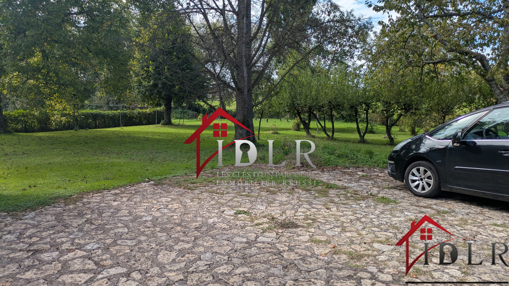 Les dépendances comprennent un garage pouvant accueillir deux véhicules avec cellier, une grange pour stockage, une cave et un puits. Les extérieurs sont soignés : jardin paysager et verger riche en arbres fruitiers (cerisiers, kiwis, figuiers, pommiers, pêchers, pruniers, groseilliers, cassis, noisetiers), deux terrasses et un grand balcon, le tout sans vis-à-vis.