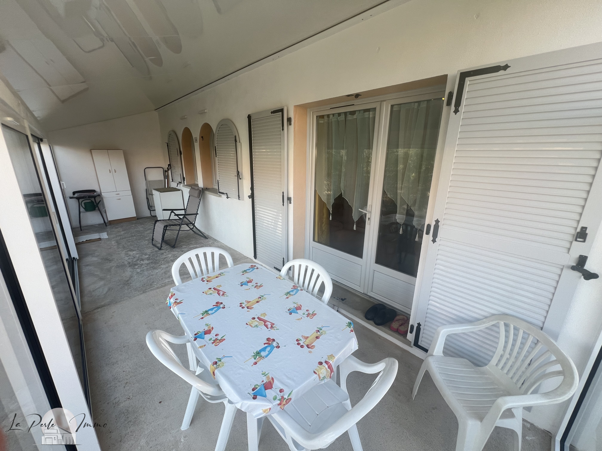Exclusivité villa de plain-pied T3 meublée de 63m2 de surface habitables avec place de parking située direct mer sans route à traverser dans une zone naturiste.