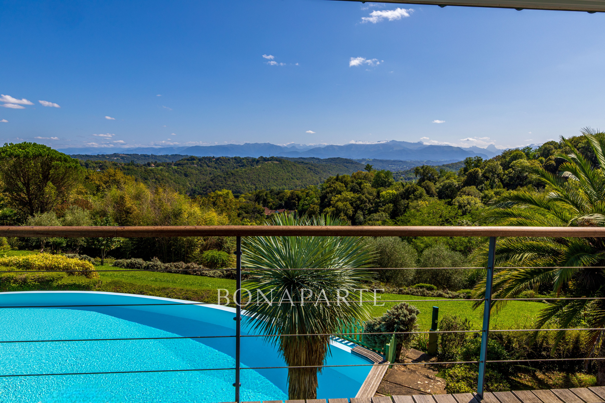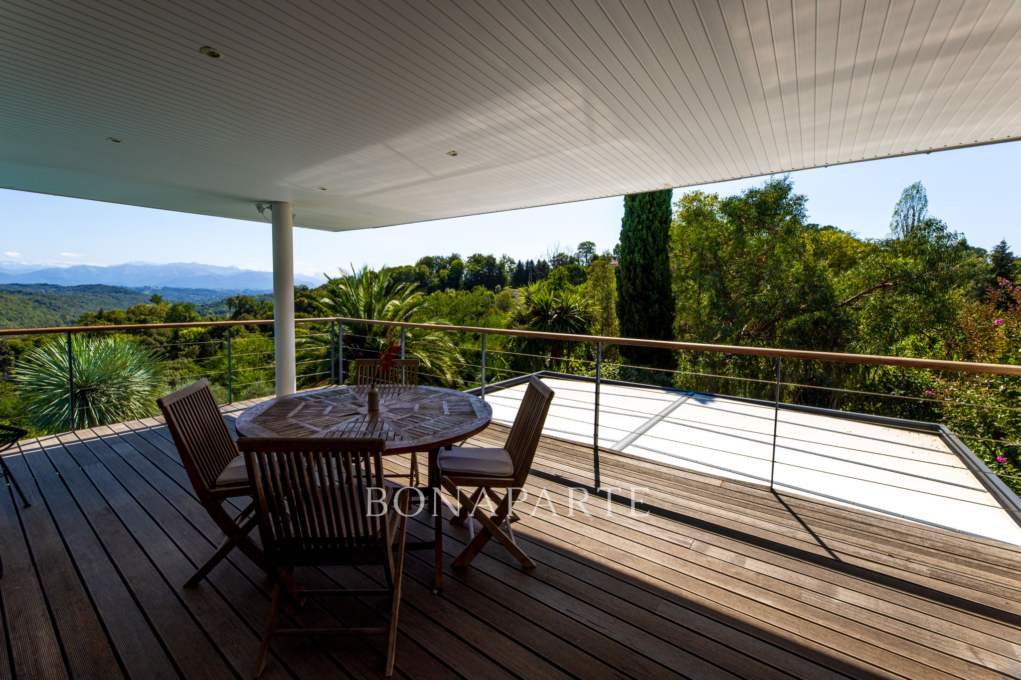 En bout d'impasse, au coeur d'un quartier ultra-exclusif des coteaux de Jurançon, cette villa contemporaine de 260 m2 domine un parc paysager et offre sans doute la plus belle vue sur les Pyrénées de la région Paloise.