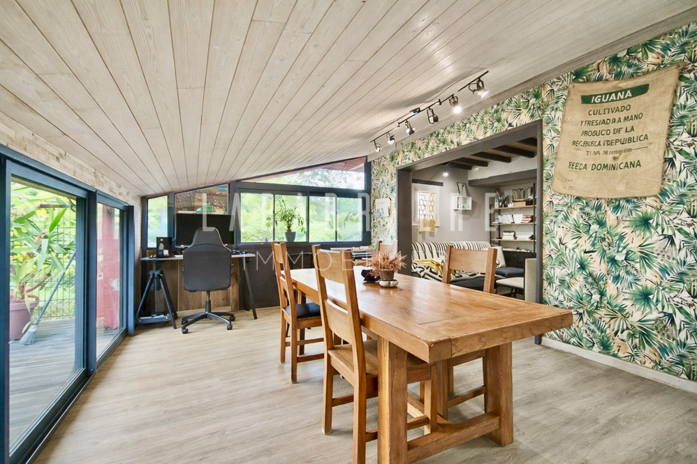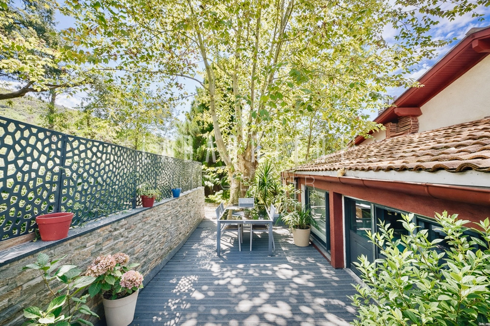 Situé au 1er et dernier étage d'une maison, cet appartement d'une surface de 90,73 m² (73,77 m² Carrez) offre une base idéale pour un projet de rénovation à votre image. Doté de volumes bien répartis, il s'organise autour d'une pièce de vie avec cuisine ouverte sur le salon-séjour, équipée d'un poêle pour une ambiance chaleureuse. Cet espace donne accès à deux terrasses, dont une couverte, véritables extensions du séjour vers l'extérieur. Un jardin privatif en pente attend d'être repensé selon vos envies : coin détente, potager en terrasse, ou jardin méditerranéen? les idées ne manqueront pas pour le sublimer. L'espace nuit se compose de trois chambres, ainsi qu'une salle d'eau, une buanderie indépendante, et un WC séparé. Deux stationnements privatifs viennent compléter le tout, un confort dans le secteur. Ce bien nécessite des travaux de rénovation, mais il présente un fort potentiel de valorisation, dans un secteur apprécié pour sa proximité avec la frontière espagnole et les commodités à quelques minutes. Un appartement qui n'attend que votre projet pour révéler tout son charme. Estimation des coûts annuels d'énergie du logement : Entre 1520 euros et 2090 euros par an. Prix moyens des énergies indexés au 1er janvier 2021 (abonnements compris). Honoraires d'agence inclus : 16 500 euros TTC, soit 5,6 % du prix HAI, à la charge du vendeur. Les informations sur les risques auxquels ce bien est exposé sont disponibles sur le site Géorisques : www.georisques.gouv.fr. Selon l'article L.561.5 du Code Monétaire et Financier, pour l'organisation de la visite, la présentation d'une pièce d'identité vous sera demandée. Copropriété de 2 lots - dont 2 lots habitation. (Pas de procédure en cours). Charges annuelles : 246 euros.