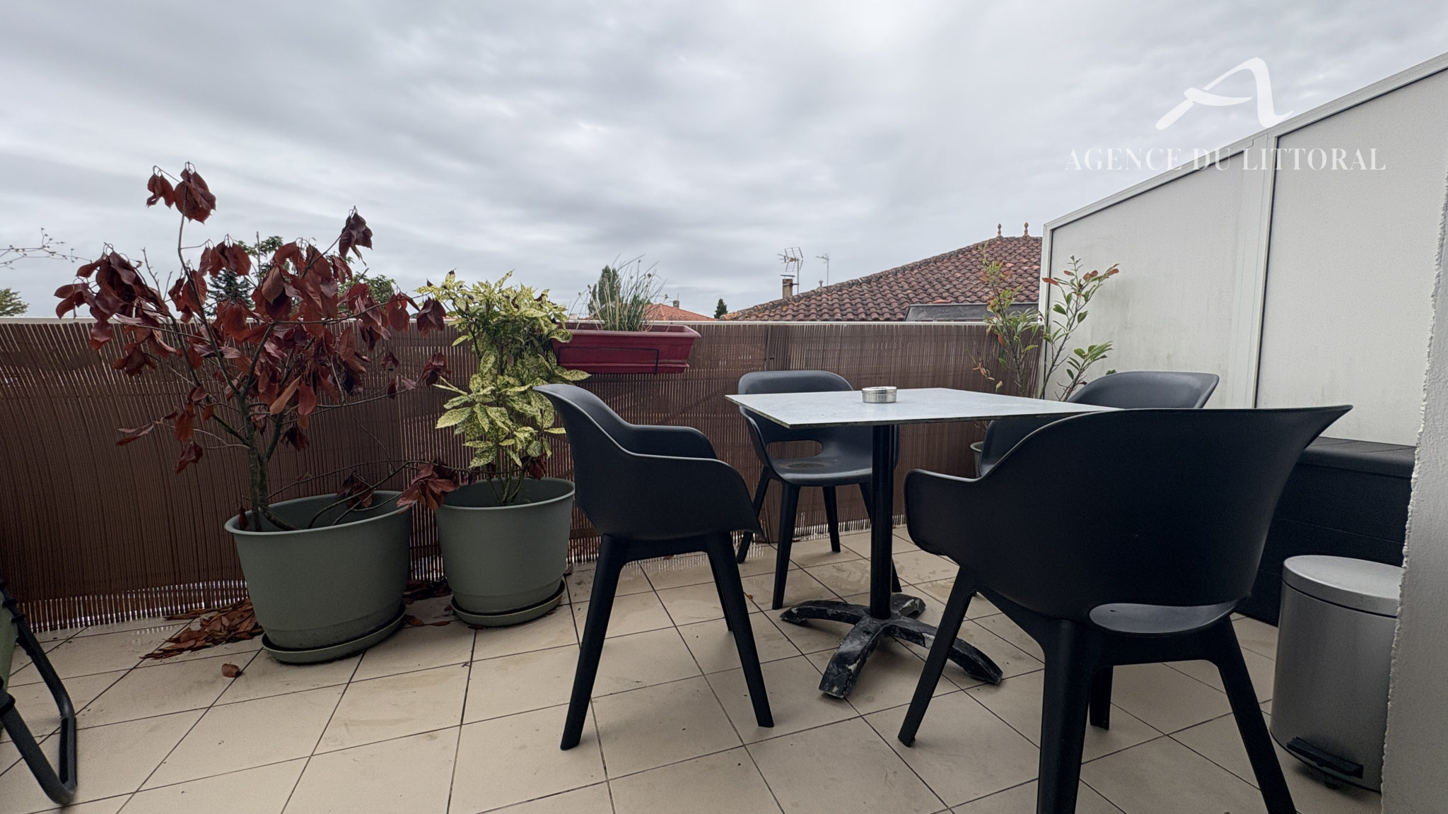 L'Agence du littoral vous propose cet appartement de 34,48 m2 comprenant une entrée, une pièce à vivre donnant sur une terrasse, une cuisine équipée, une salle de bains avec wc. A l'étage une grande chambre avec placard. Pour compléter ce bien une place de parking en aérien.