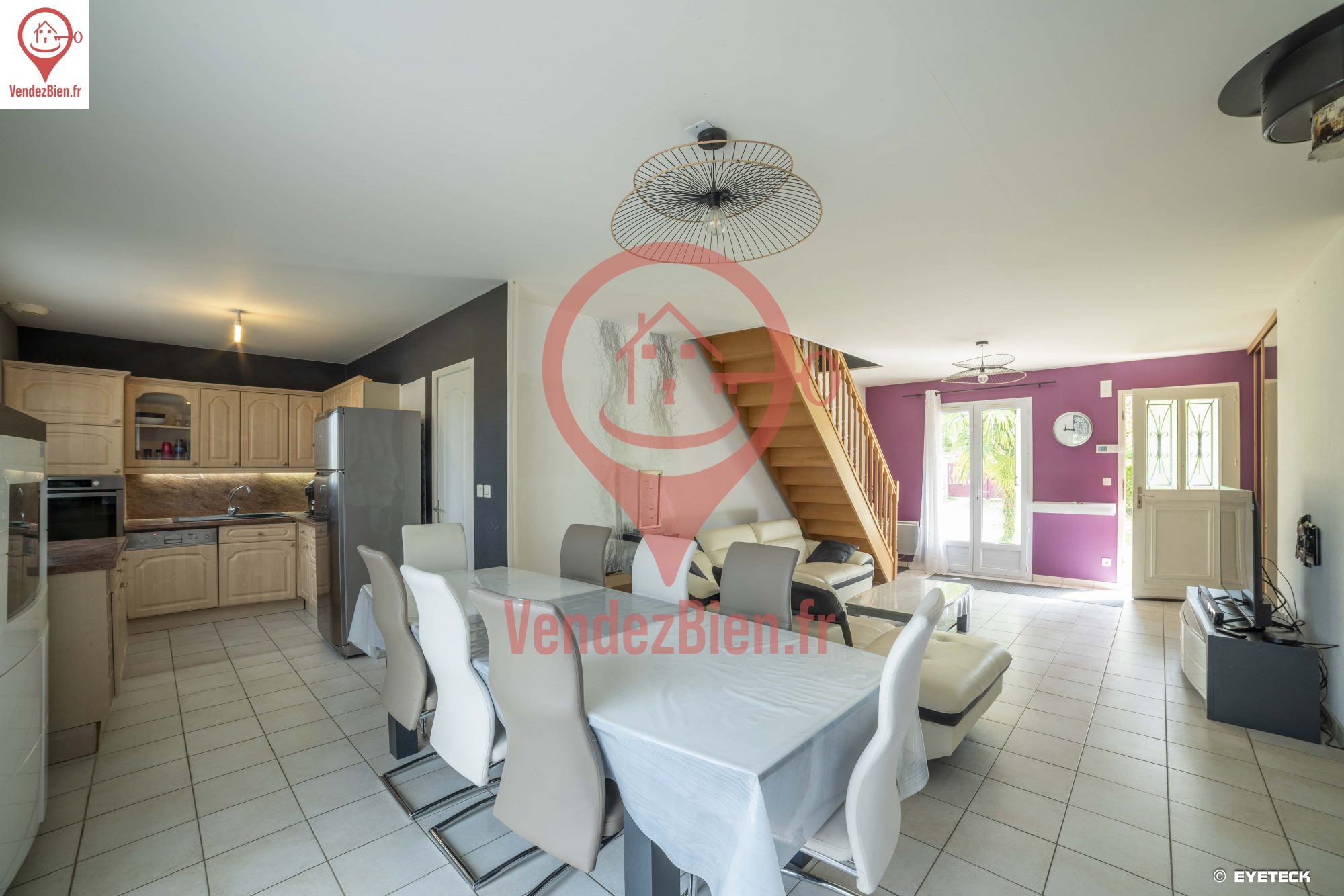 L'espace de vie principal, lumineux et convivial, associe salon, salle à manger et cuisine ouverte, avec un accès direct à une vaste terrasse idéale pour recevoir. Un cellier vient compléter la partie cuisine.