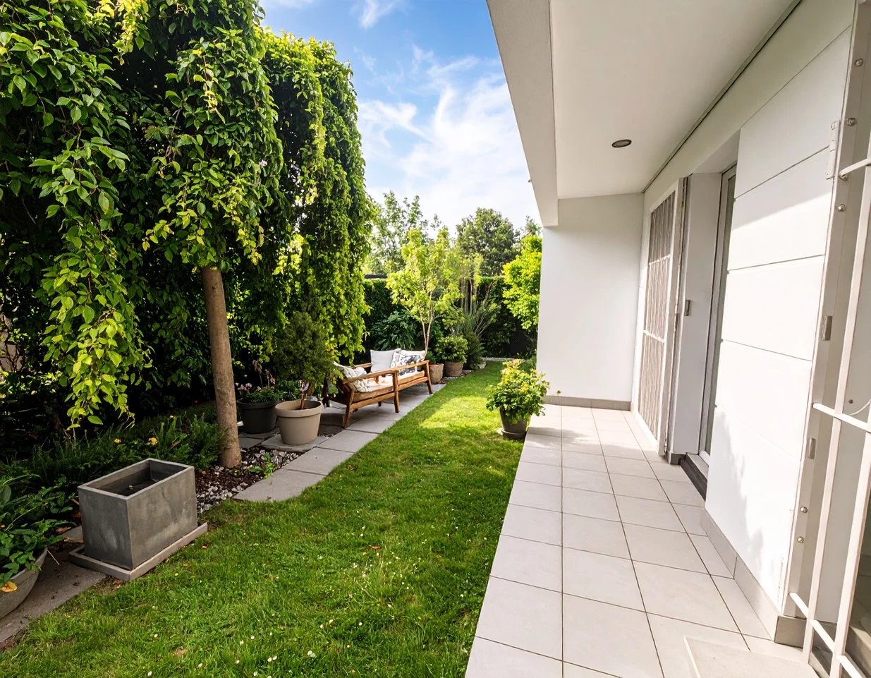 Cet espace extérieur dispose d'une grande terrasse couverte pouvant être aménagée de 28 m².