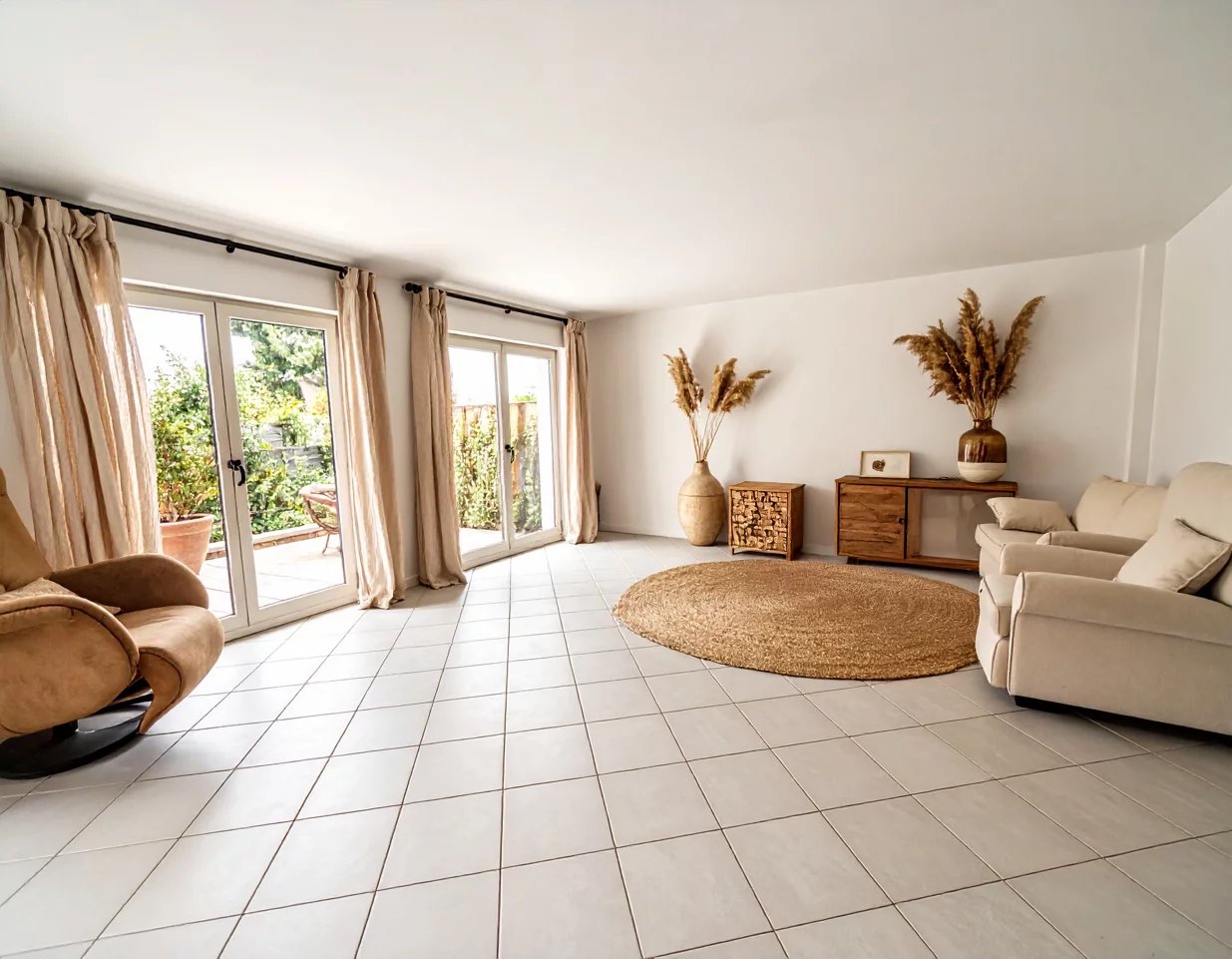 Grand T3 situé en rez de jardin sans aucun vis à vis dispose de 2 espaces extérieurs privatifs et jardins. 2 places de stationnements privatives extérieures et un garage.