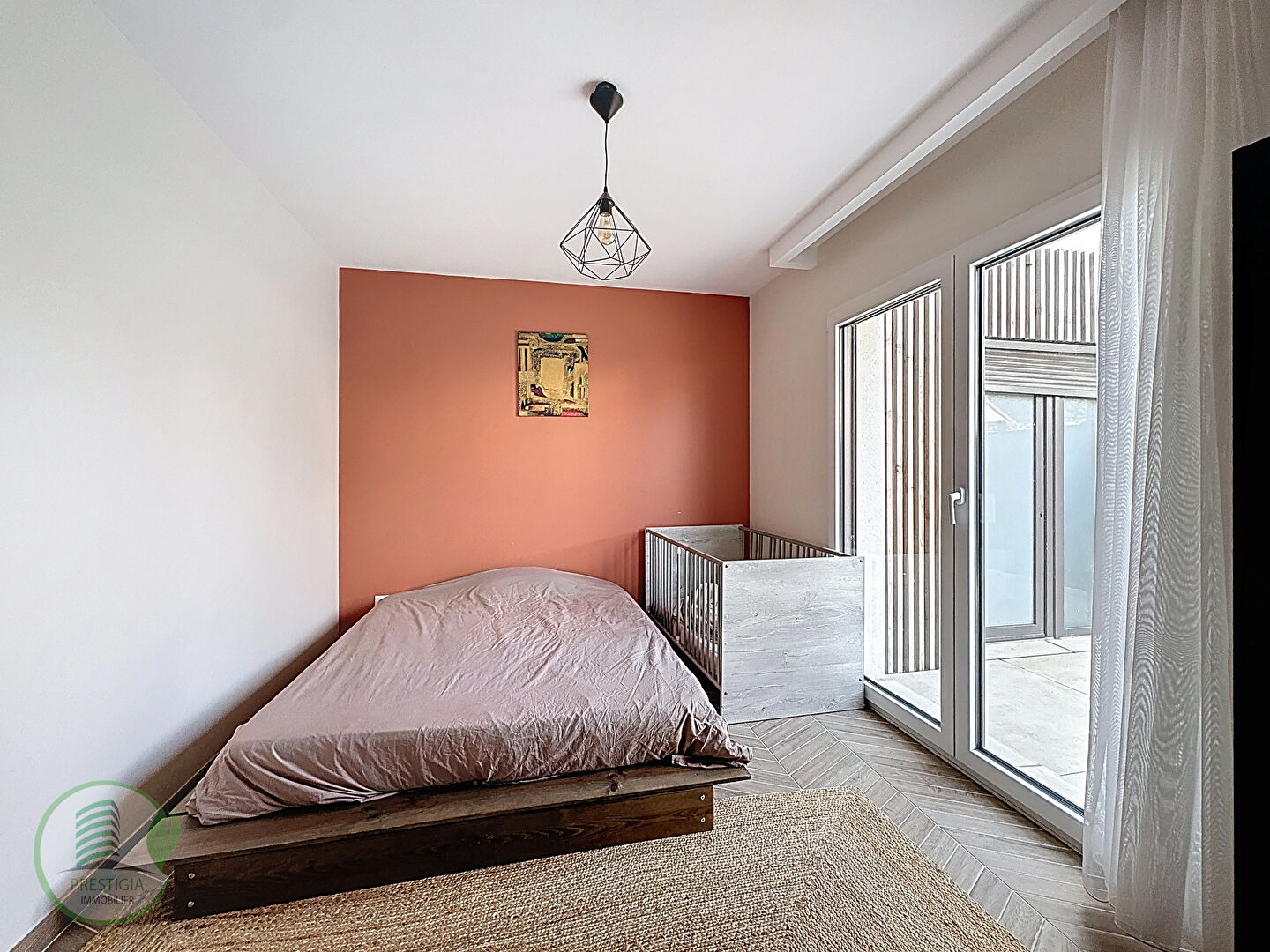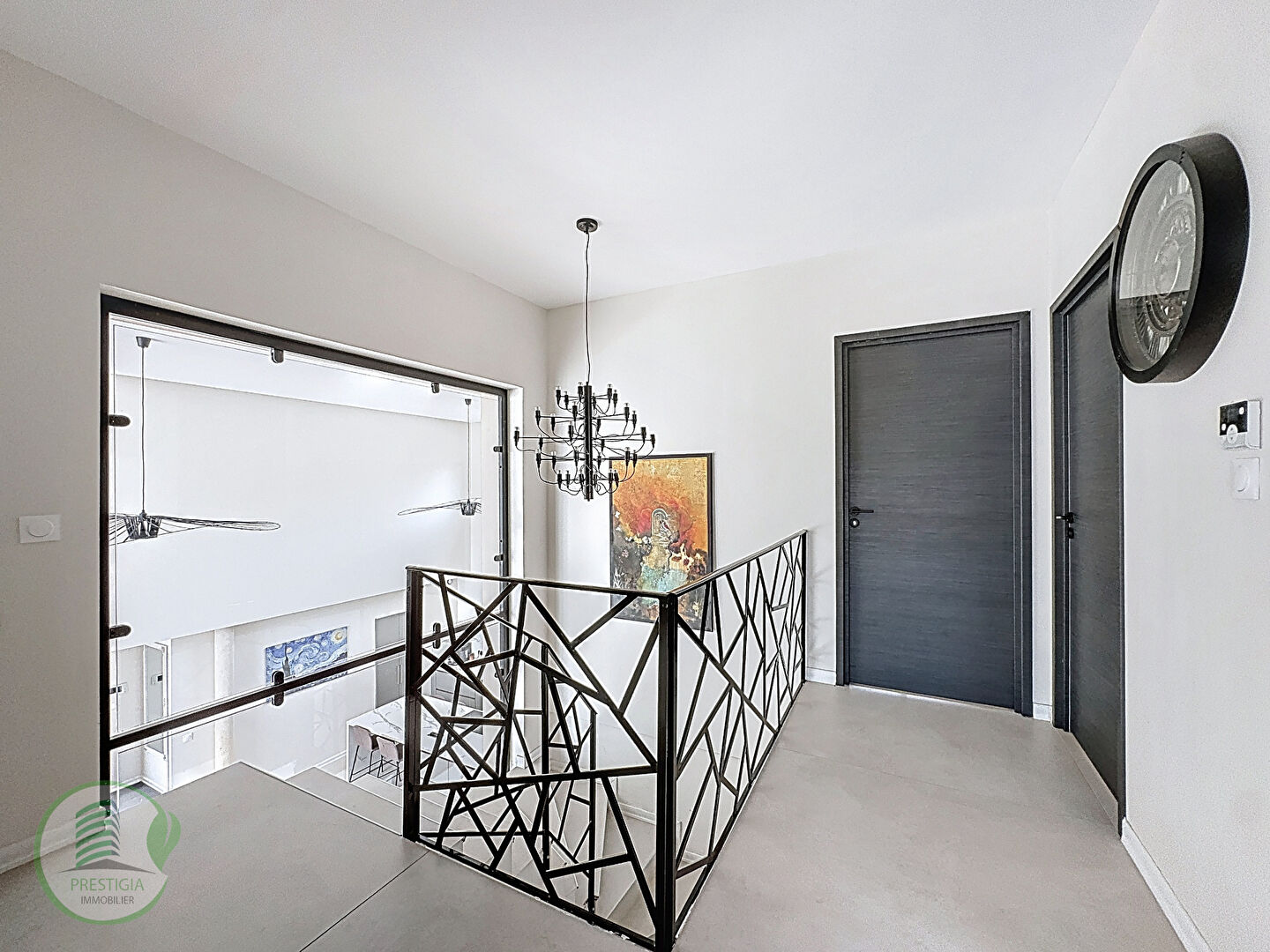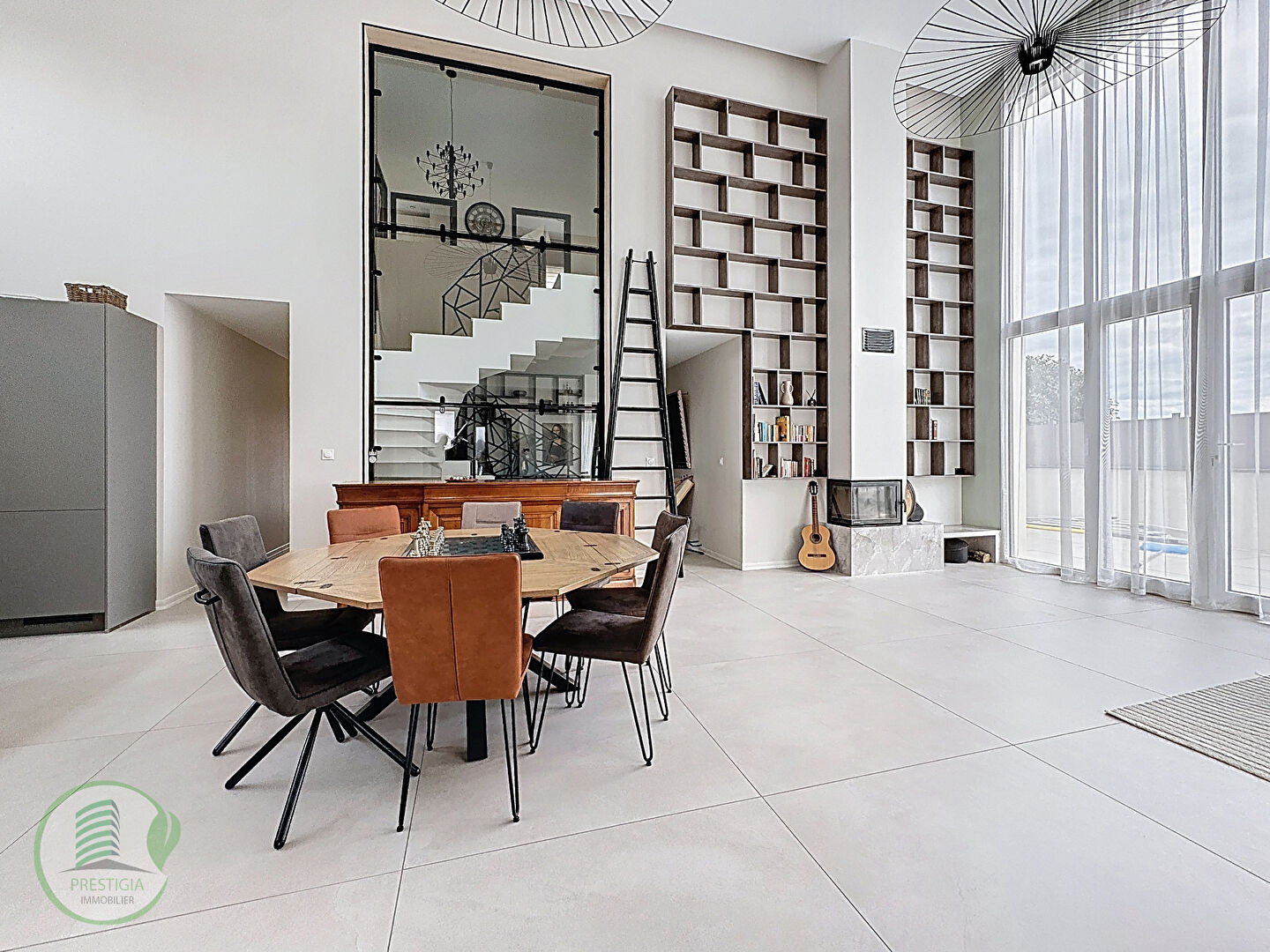 A découvrir, cette maison d'architecte aux volumes généreux et fonctionnels. Elle dispose d'un vaste espace de vie d'environ 65 m² avec accès terrasse et jardin, d'un cellier, de deux chambres dont une suite parentale avec dressing et salle de douche ainsi qu'un bureau. A l'étage, vous trouverez un palier desservant deux chambres avec dressing, une salle de bain avec WC et une buanderie. La maison bénéficie également d'un sous-sol total accessible uniquement depuis l'intérieur, comprenant notamment une salle de cinéma et une salle de sport. Un garage. Elle offre en plus une piscine et un jardin clos et arboré. Un bien rare sur le secteur, idéal pour une famille à la recherche d'espace, de confort et de modernité. Les informations sur les risques auxquels ce bien est exposé sont disponibles sur le site Géorisques : https://www.georisques.gouv.fr" Cette maison vous est proposée par l'agence Prestigia immobilier . Contactez-nous par téléphone ou sur notre site internet www.prestigiaimmobilier.fr