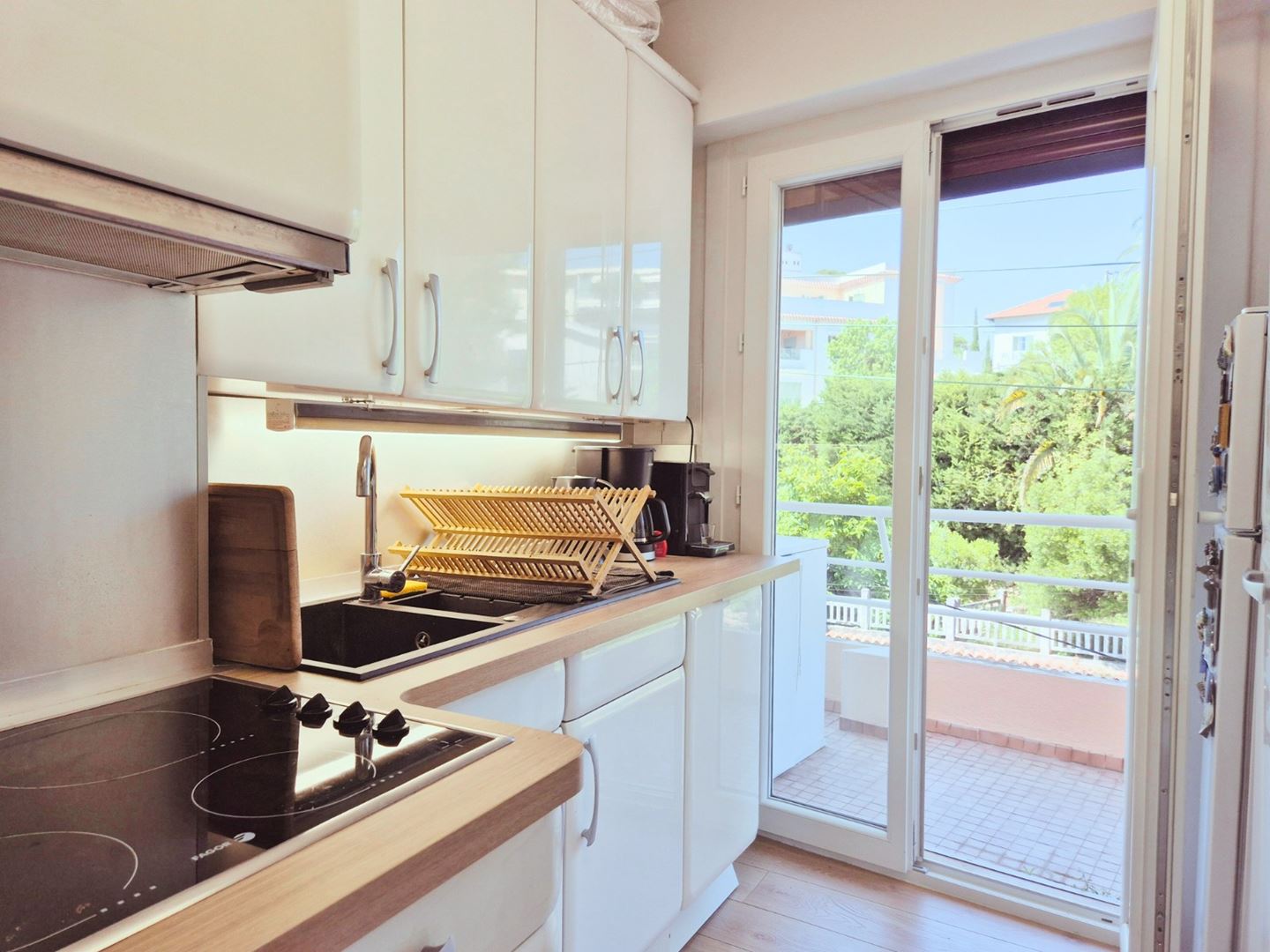 LE CANNET quartier de l'Europe 2P 45 M2 au 2e étage avec ascenseur, vue dégagée mer, terrasse d'angle sur tout l'appartement 22 m2, entrée, cuisine équipée, séjour, une chambre de 12 m2, salle d'eau , wc indépendant, cave. Double vitrage, climatisation réversible. faibles charges