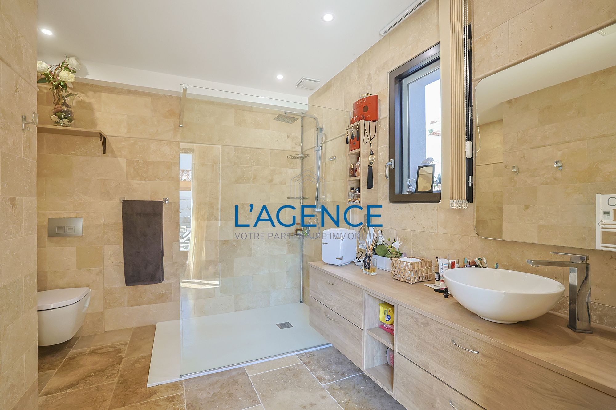 Très belles prestations, travertin au sol, cuisine avec plan en marbre, climatisation gainée...