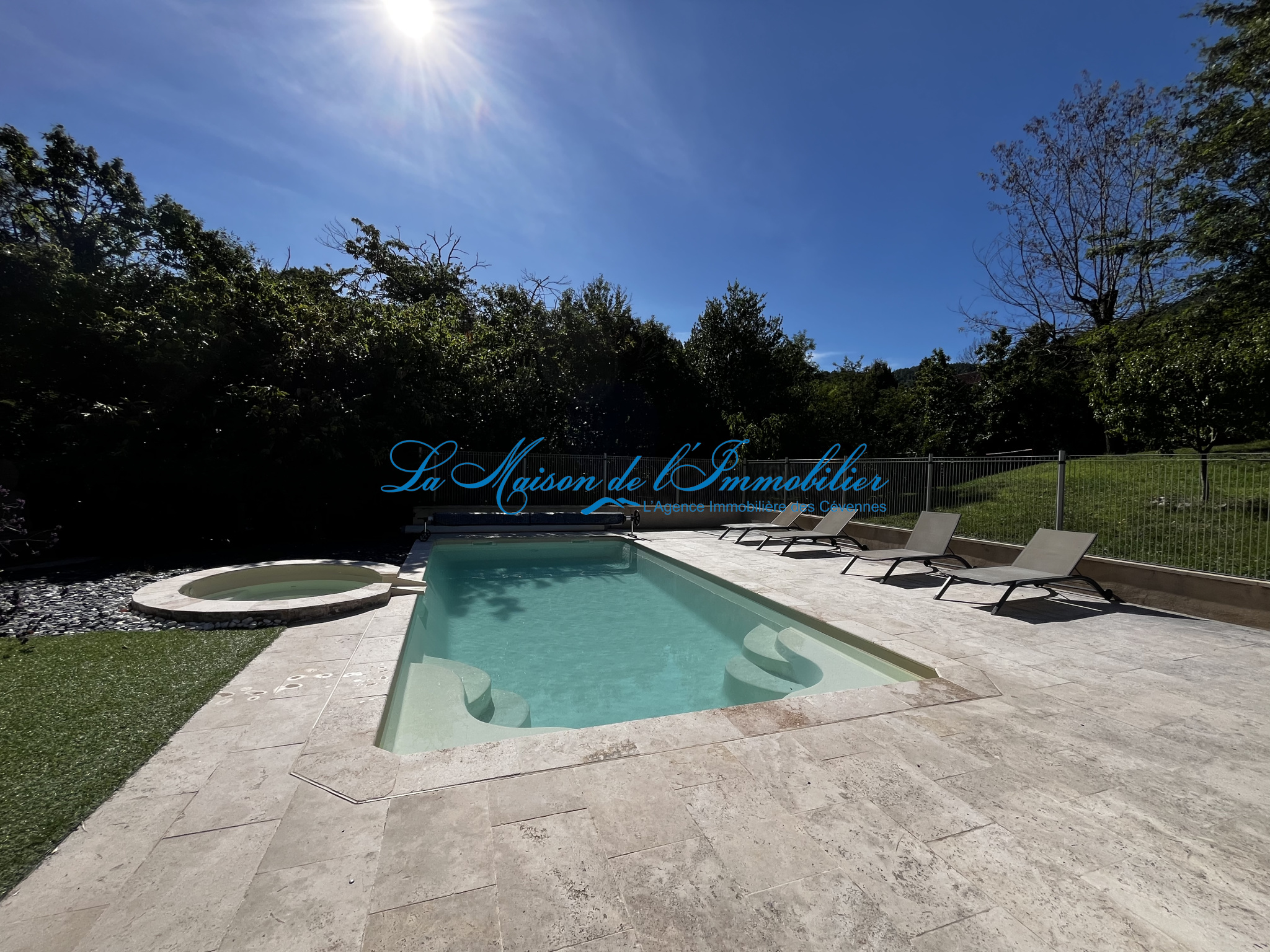 À l'extérieur, vous profiterez d'un terrain clos et arboré de 3 985 m2 avec piscine, jacuzzi et un pool house comprenant une salle d'eau.
