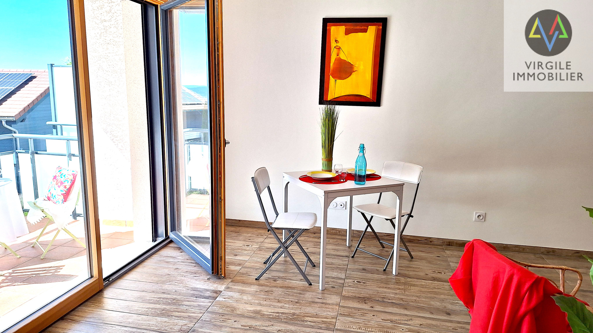 Ref 2200: Situé au premier étage d'une résidence sécurisée et récente (2015), cet appartement traversant d'environ 63 m2 offre un cadre de vie paisible et lumineux. Il se compose d'une belle pièce de vie d'environ 34 m2 avec une cuisine équipée moderne, donnant accès à une terrasse d'environ 9 m2 exposée sud-ouest. L'appartement dispose de deux chambres confortables, d'un chauffage par plancher chauffant (chaudière collective à condensation GPL) et présente une décoration soignée avec des matériaux de qualité. Classé en DPE C, il est bien isolé et économe en énergie. Un garage fermé de 16 m2 avec mezzanine vient compléter le bien, ainsi qu'un grand parking collectif pour les résidents et visiteurs. La copropriété, bien entretenue, met également des composteurs à disposition des habitants.