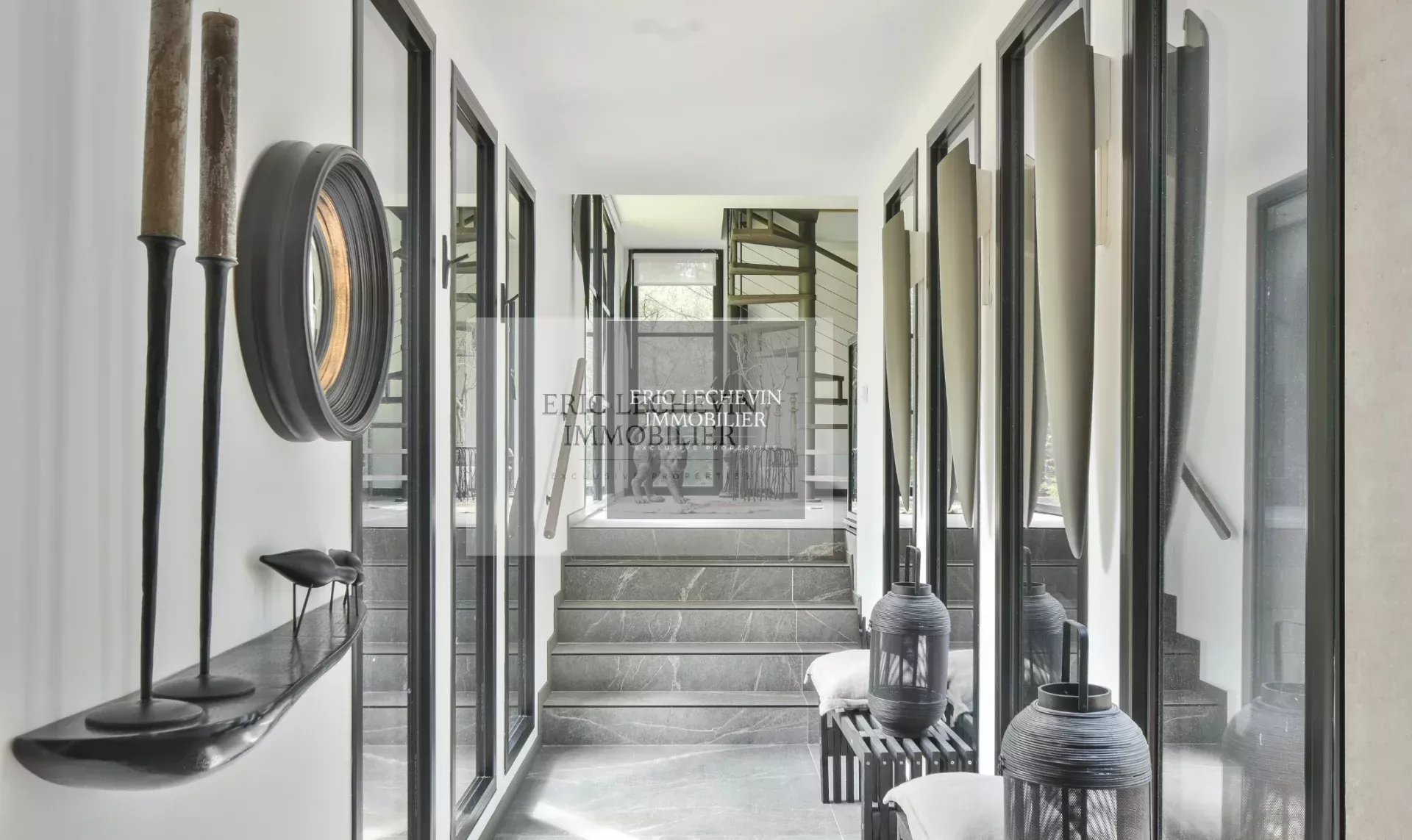 Elle se compose d'un hall d'entrée, un coin vestiaire, un grand salon avec mezzanine pouvant servir de pièce de réception, une salle à manger ouvrant sur une magnifique cuisine américaine de la marque 'Slots', une belle terrasse, une suite parentale en rez-de-chaussée, un wc invité.