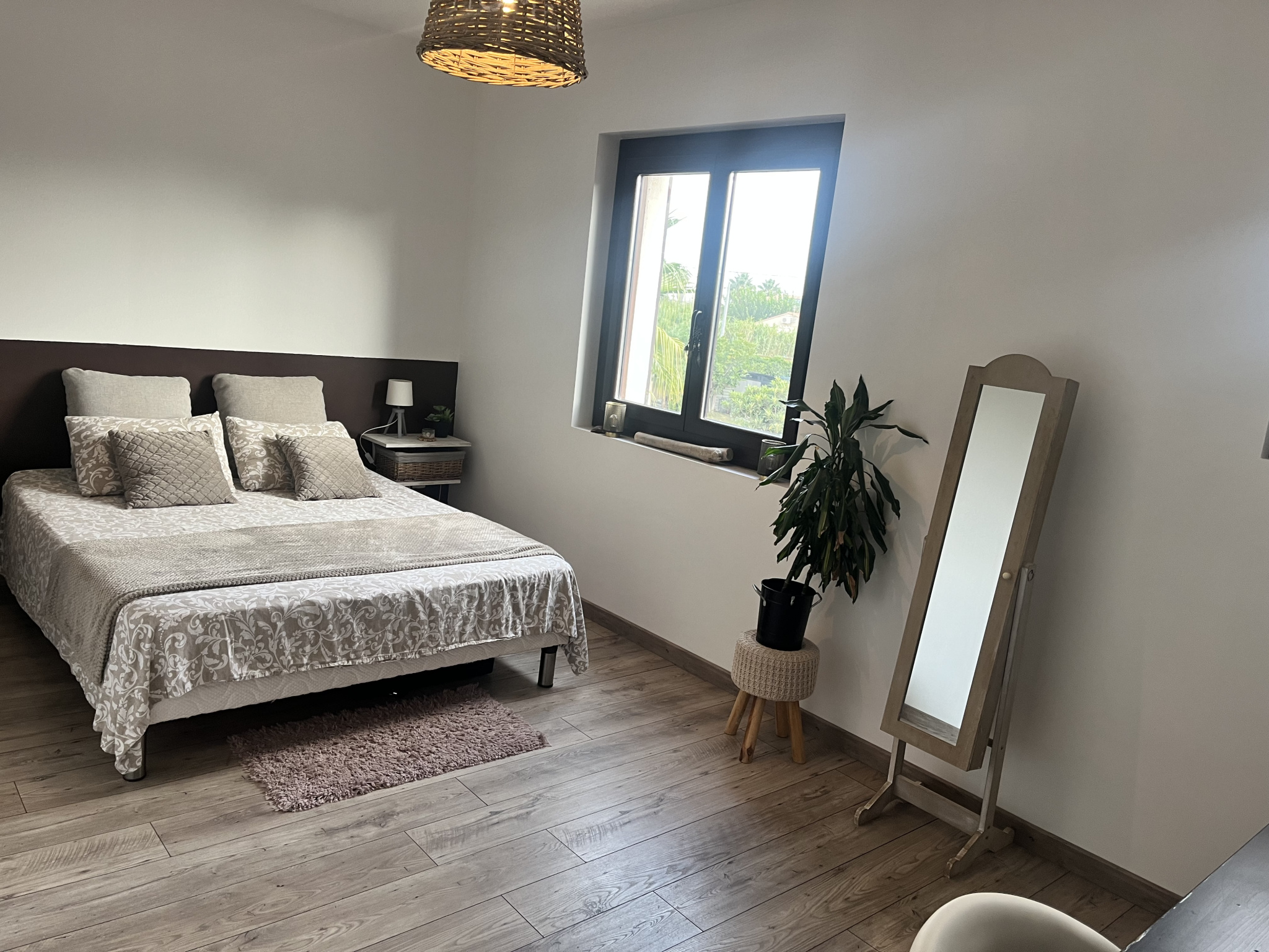 La villa se déploie en quatre faces sur un vaste terrain paysagé avec palmiers, oliviers et une belle piscine 5X8 avec sa terrasse en bois exotique. Un garage ainsi que plusieurs emplacements de stationnement complètent l'ensemble.