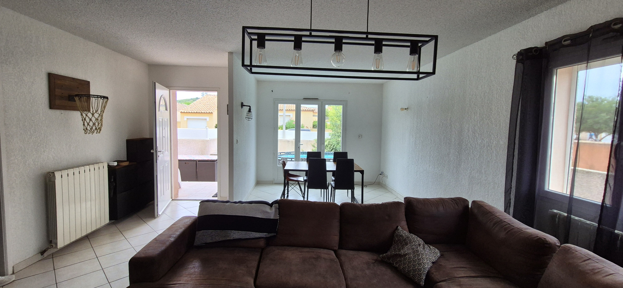 Secteur proche collège et lycée, Villa de 97 M2 de plain pied à la location, comprenant un grand séjour, cuisine indépendante, cellier, trois chambres, une salle de bains et wc indépendant.
