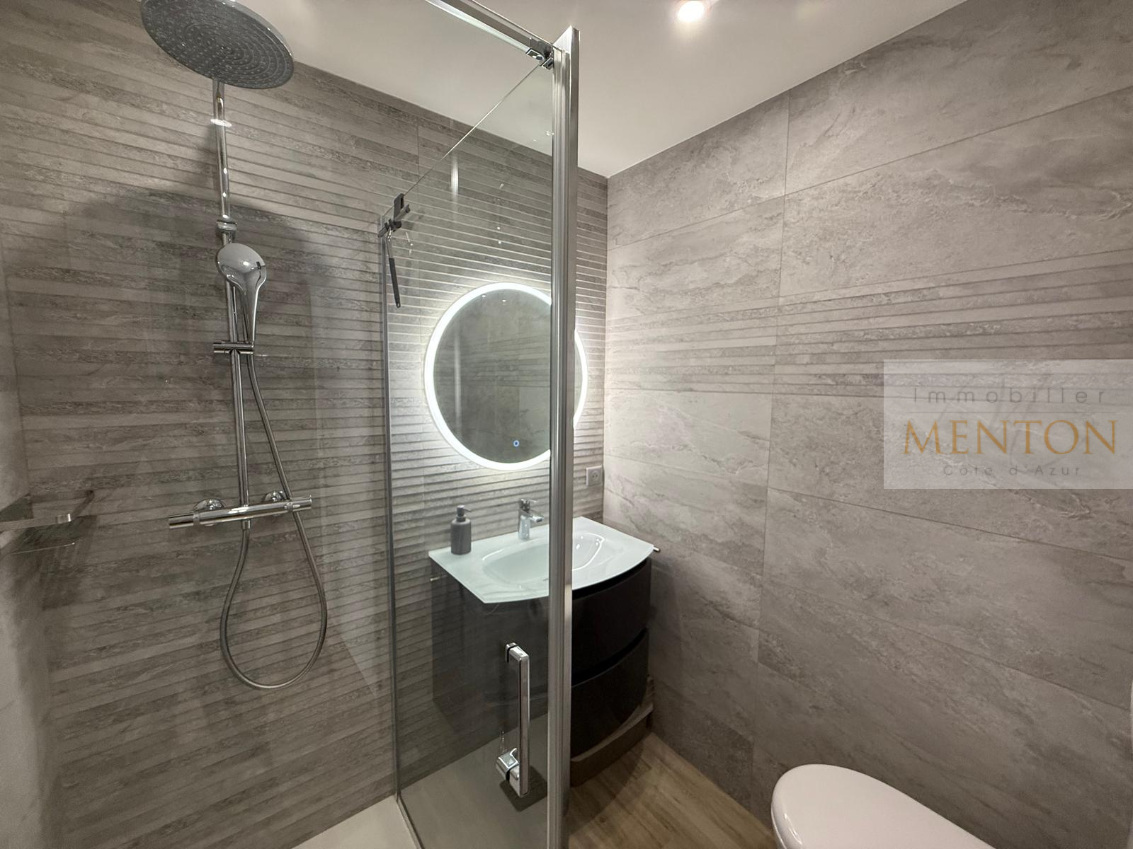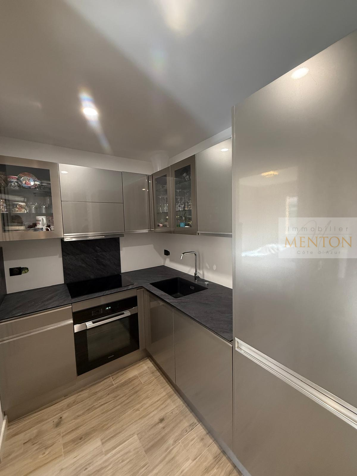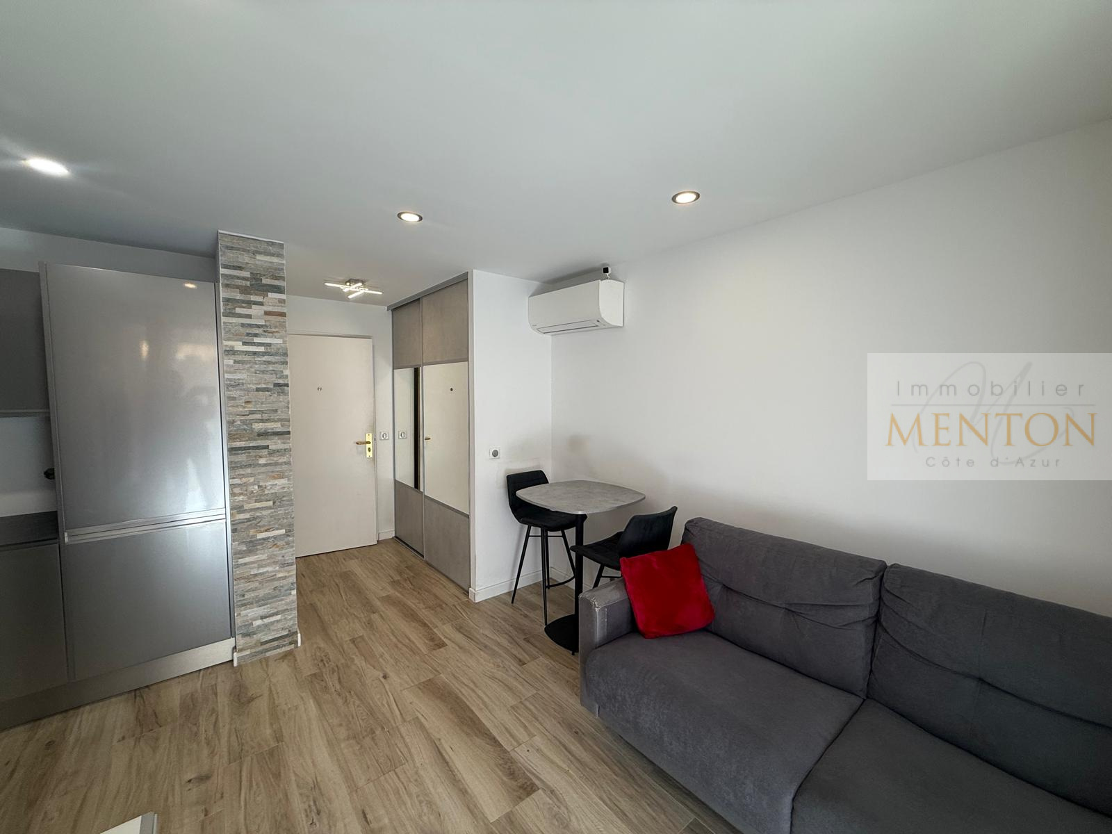 Sur la commune de Menton, proche de la piscine et de l'A8 , magnique 2 pièces sans vis à vis ( anciennement studio ) refait à neuf , avec des prestations de qualité, dans une belle résidence de standing sécurisée , en étage élevé, vue dégagée, très belle exposition sud-ouest , climatisation, volets électiques, double vitrage, cuisine partiellement équipée ( électro ménager MIELE ) une jolie terrasse complète ce joli bien !