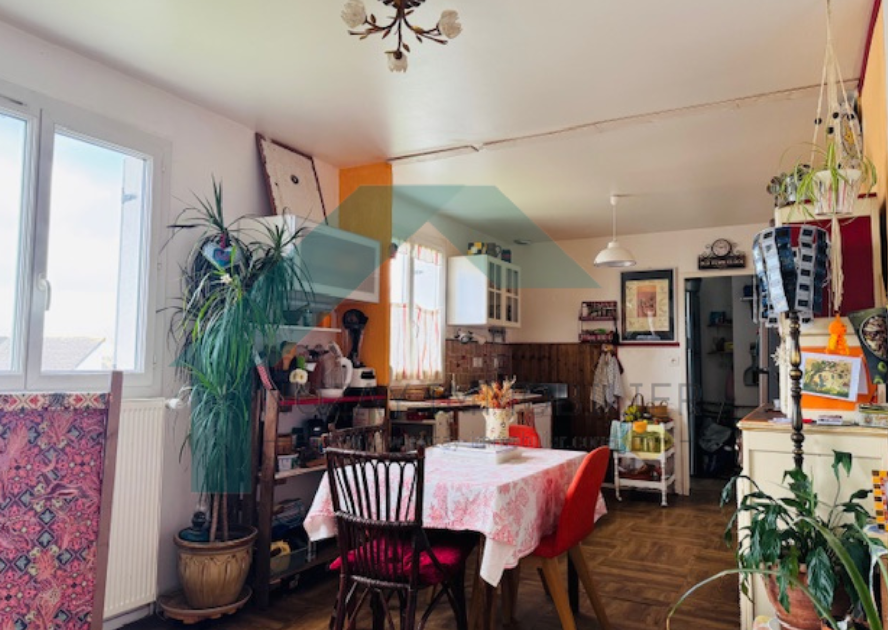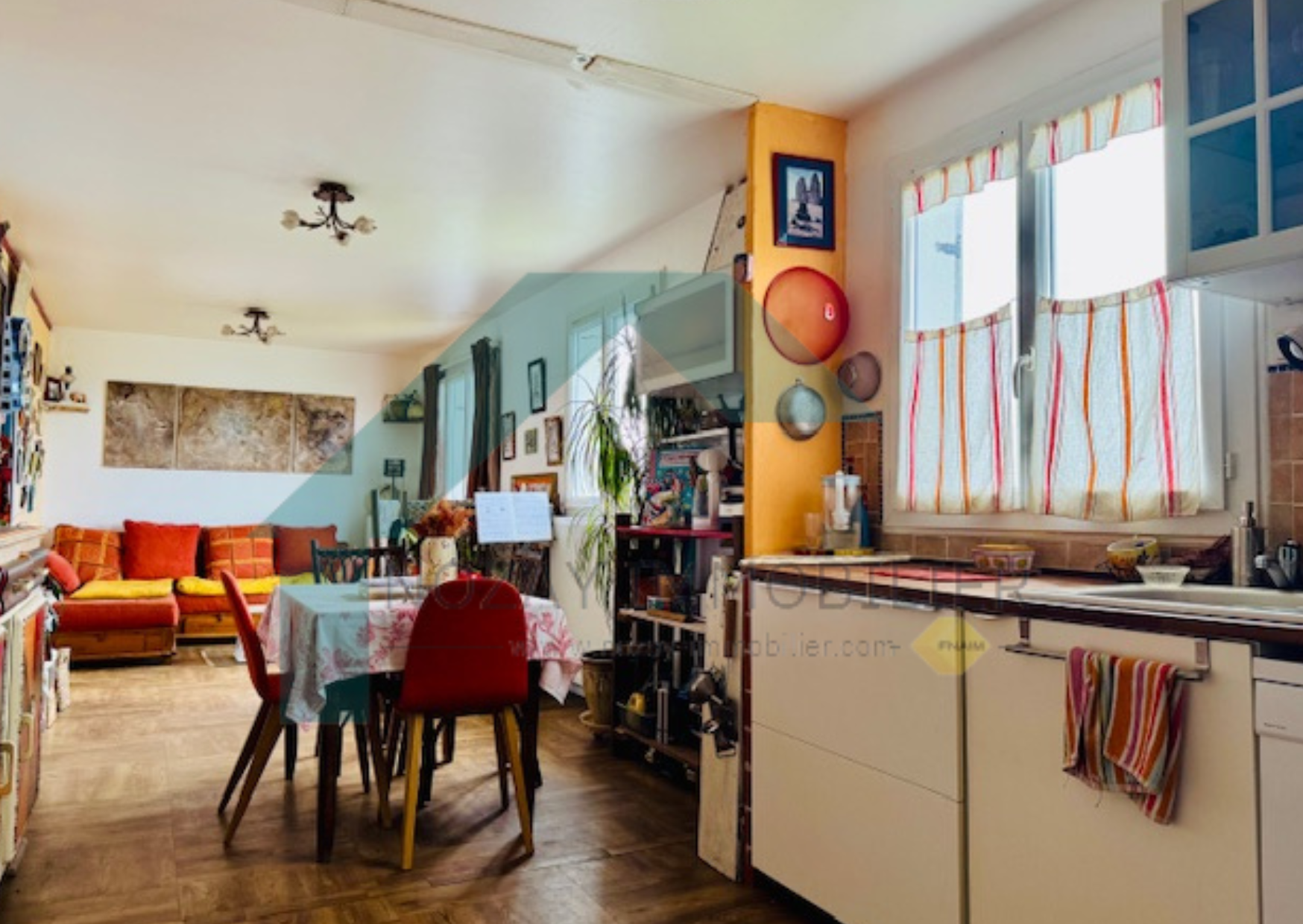 Située proche des commerces, dans un endroit calme. Maison offrrant de plain-pied une entrée, une pièce de vie avec coin cuisine, un bureau, 2 chambres, salle d'eau et wc, un débarras et un cellier desservant le garage. Parcelle de jardin d'environ 500 m2. Chauffage central (pompe à chaleur). Assainissement TAE conforme. Exclusivité.