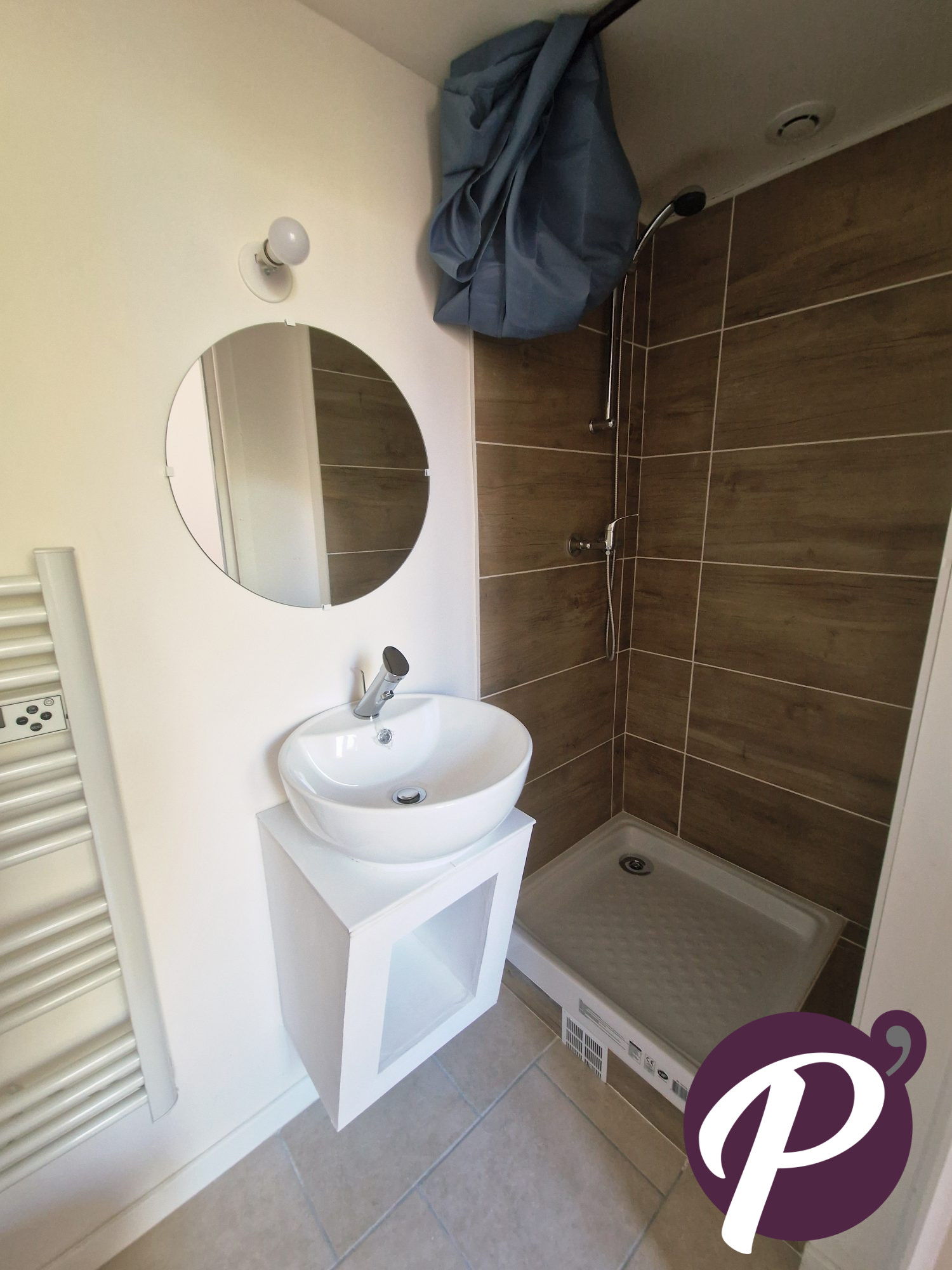 La chambre est un véritable havre de paix. Vous y trouverez un espace de vie intime et apaisant, parfait pour vous reposer après une longue journée. La salle d'eau, moderne et fonctionnelle complète parfaitement cet appartement.
