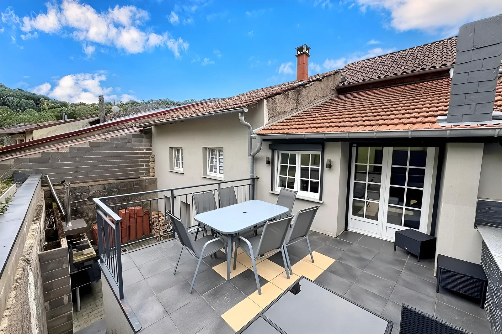 Située dans un environnement calme, cette maison lorraine mitoyenne de 1900 développe une surface habitable de 118,33 m² sur un terrain cadastré de 1,51 ares. Elle allie le charme de l'ancien, des équipements modernes et un fort potentiel d'évolution. Au rez-de-chaussée, vous trouverez une entrée accueillante, un séjour chaleureux équipé d'un poêle à bois, une cuisine indépendante entièrement équipée, une salle de bains avec baignoire et douche, ainsi qu'une buanderie. Ce niveau offre un agencement fonctionnel et une atmosphère conviviale pour le quotidien. A l'étage, un vaste salon lumineux de 30 m² vous attend, avec sa cheminée en pierre qui apporte un cachet indéniable à la pièce. Ce niveau comprend également une chambre, ainsi qu'une chambre parentale avec un accès direct à une terrasse attenante, parfaite pour profiter des journées ensoleillées en toute intimité. Les combles sont aménageables selon vos besoins : chambres supplémentaires, bureau, espace jeux ou stockage. Une belle opportunité pour agrandir la surface habitable si besoin. Côté confort, la maison est équipée d'une pompe à chaleur performante, d'un poêle à bois, d'une cheminée, d'un adoucisseur d'eau, et elle est raccordée au tout à l'égout. Une seconde terrasse attenant à la cuisine en rez-de-chaussée vient compléter ce bien, offrant de nombreuses possibilités : création d'un espace extérieur, jardin, coin repas ou détente. Les informations sur les risques auxquels ce bien est exposé sont disponibles sur le site Géorisques : www.georisques.gouv.fr CONTACT : Maxime BLAES 07.81.78.05.62