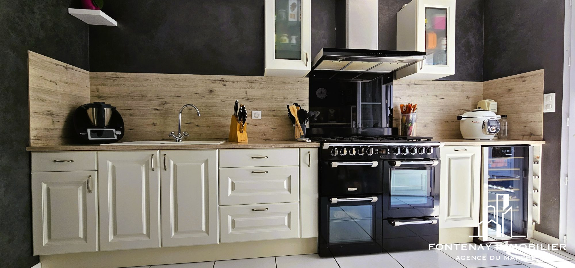 Cuisine aménagée et équipée, vaste salon/séjour avec cheminée/insert d'environ 64 m² avec une belle hauteur sous plafond, arrière cuisine, toilettes, dégagement, salle d'eau, trois chambres. A l'étage mezzanine avec coin bureau.