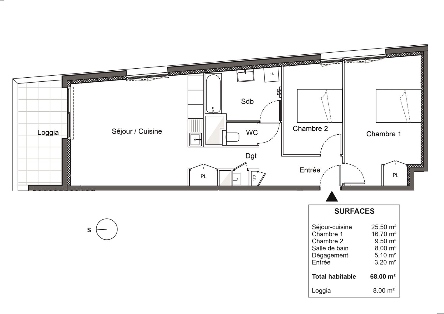 Bordeaux-Mérignac, beau T3 de 68 m², au troisième étage dune résidence de 52 logements, répartis sur trois bâtiments. Il se compose dune entrée, dune pièce de vie ouvrant sur une belle loggia, de deux chambres, dune salle de bains et dun wc. Conforme à la norme BBC-RT2012, il est équipé dun chauffage individuel au gaz. Il dispose dune place de stationnement au sous-sol. Les commerces sont au pied de la résidence ainsi que le tram A qui permet daccéder rapidement au centre-ville de Bordeaux, ou à laéroport. Écoles, collège et lycée sont accessible à pied. Il sera disponible en décembre 2026. Taxe foncière 900euros, charges mensuelles 90 euros. Les honoraires dagence sont à la charge du vendeur. Les risques auxquels ce bien est exposé sont disponibles sur le site Géorisques: www.georisque.gouv.fr