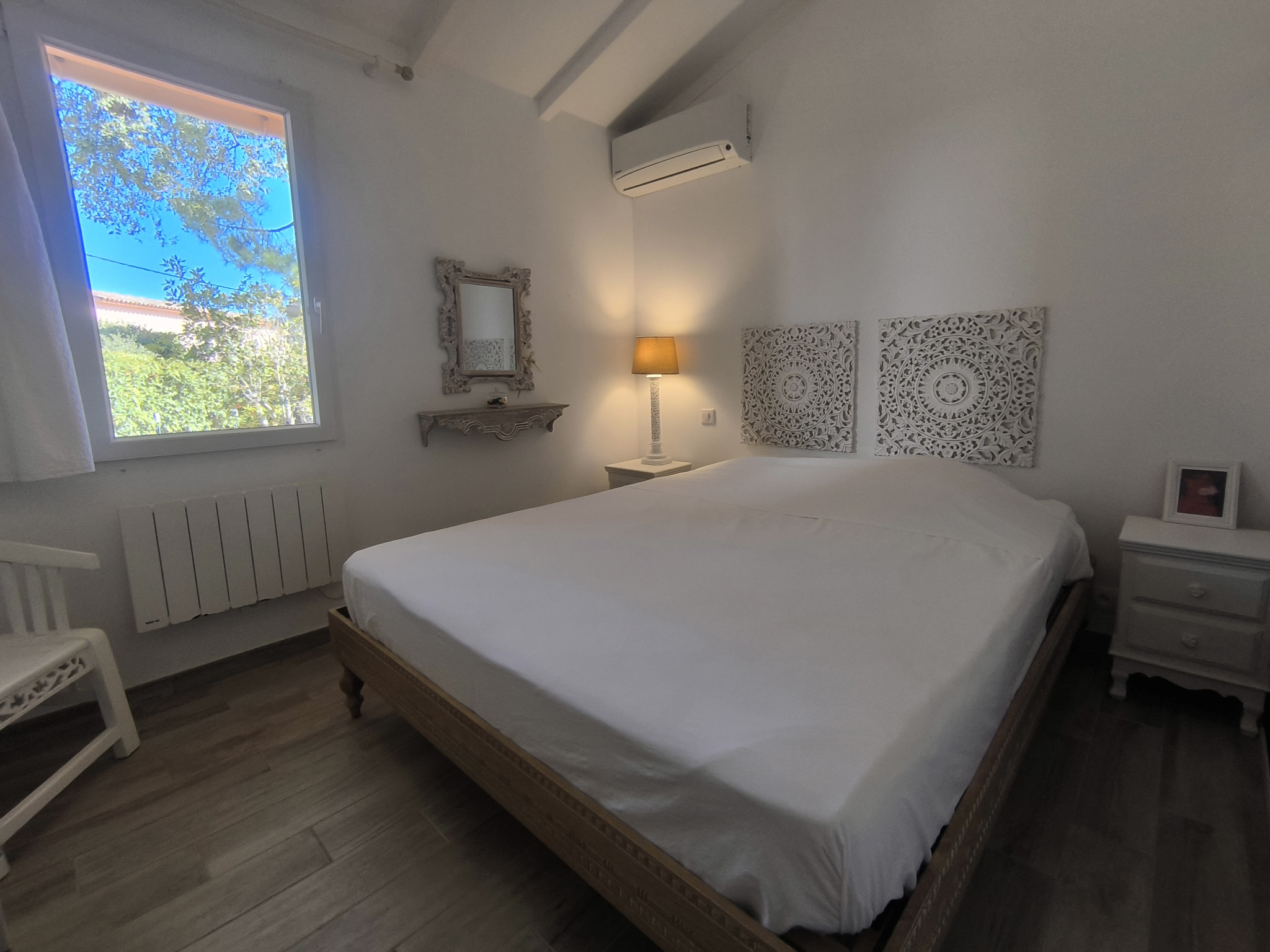 Vous serez séduit par cette mini-villa située à 200 mètres de la plage de la pinède à Pinarello de Sainte Lucie de Porto-Vecchio. Nichée au calme et sans vis à vis au sein d'une petite résidence sécurisée, vous poserez vos valises dans ce lieu plein de charme. La mini-villa récemment rénovée avec goût et avec des matériaux de qualité, comprend un salon / séjour avec cuisine intégrée entièrement équipée, une chambre climatisée avec placard, une salle d'eau avec douche italienne et un toilette indépendant.