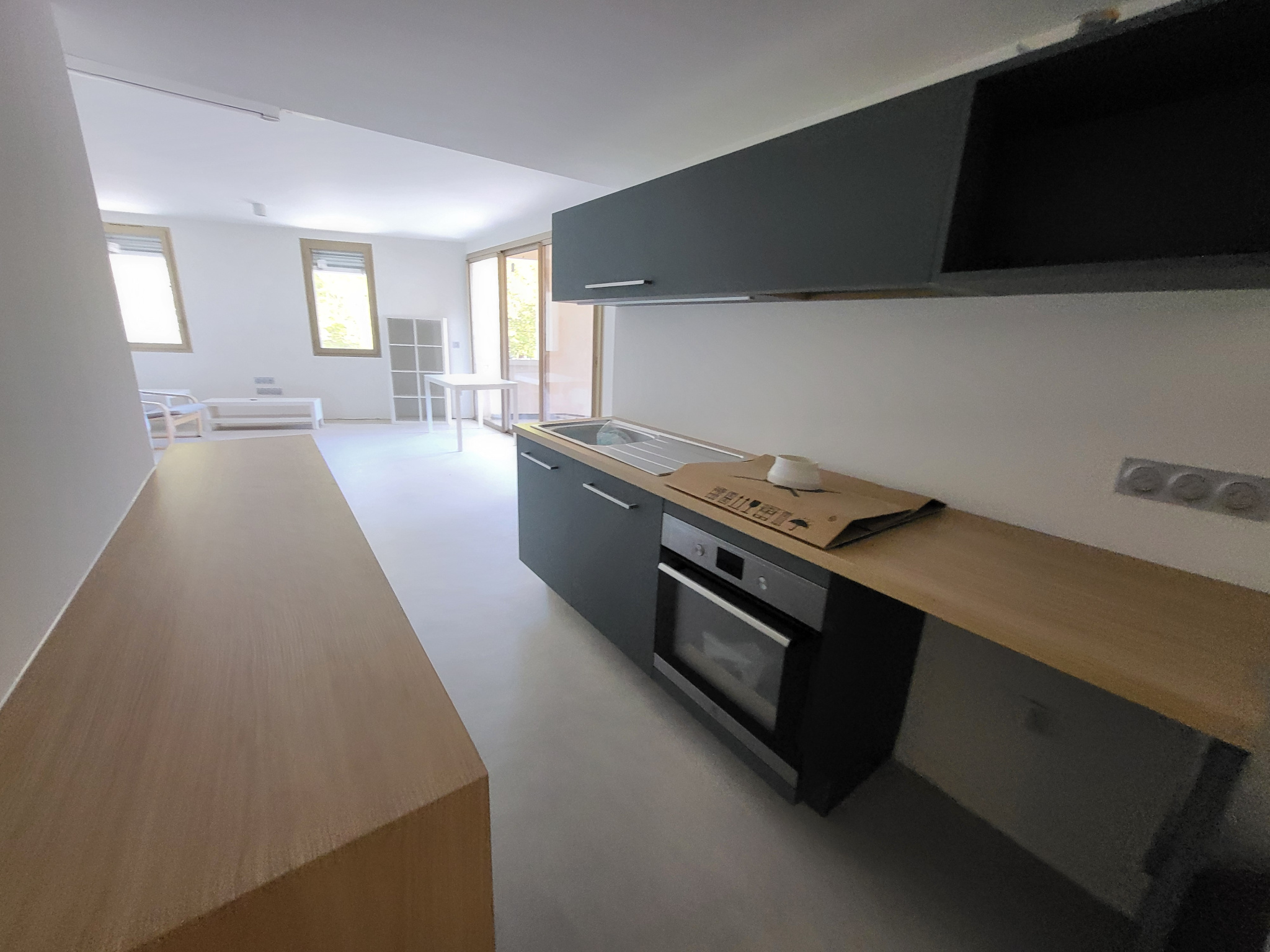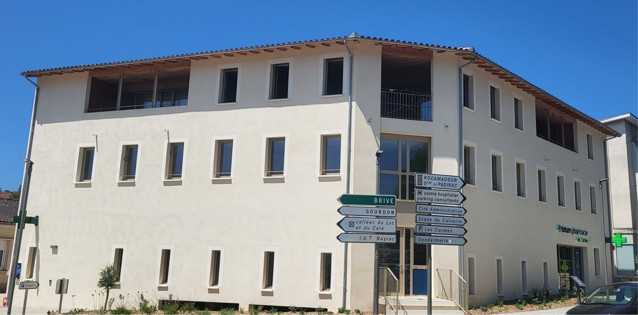Au dernier étage d'un immeuble neuf proche du centre ville de Figeac, appartement T3 avec terrasse, loué meublé.