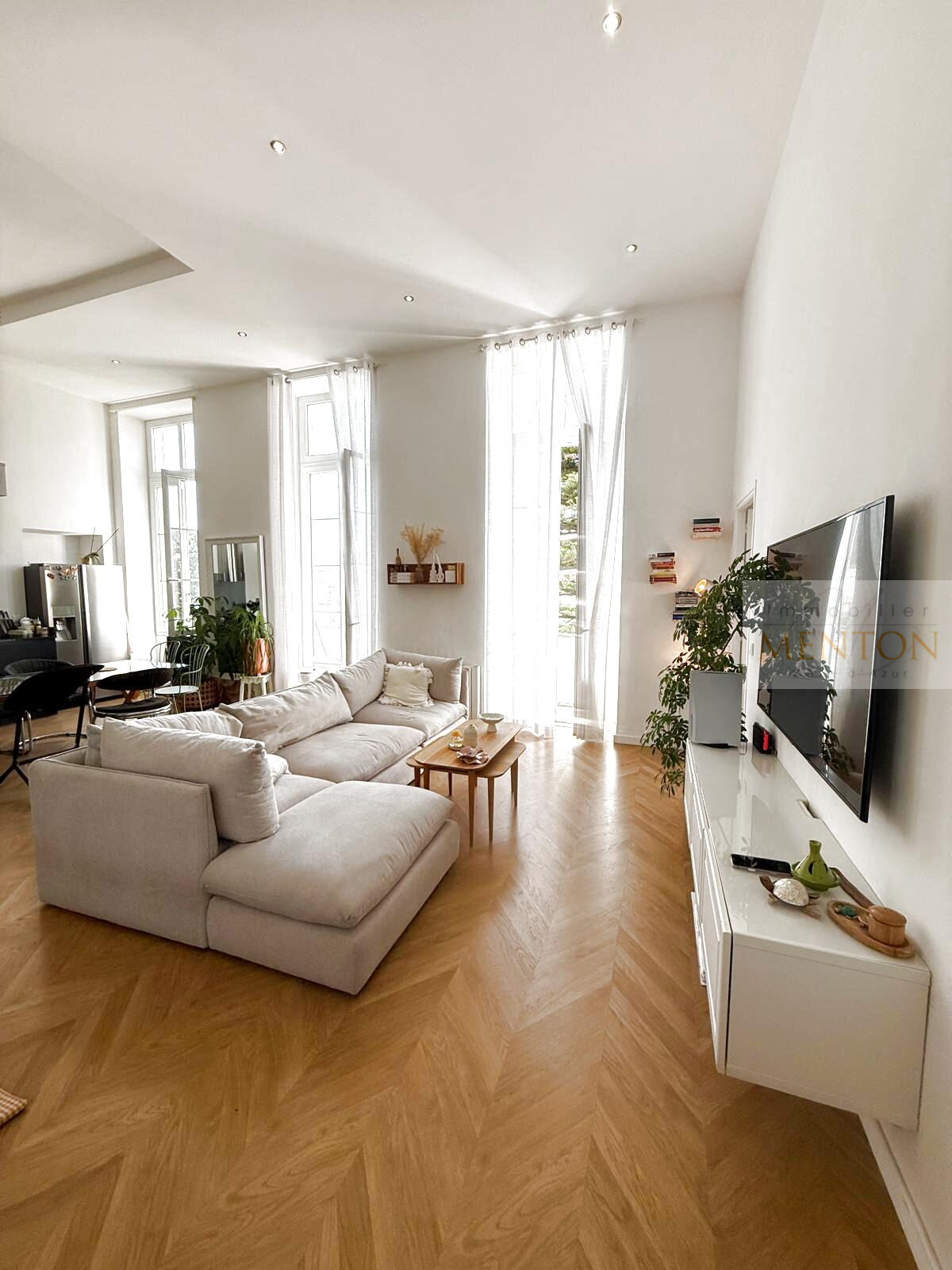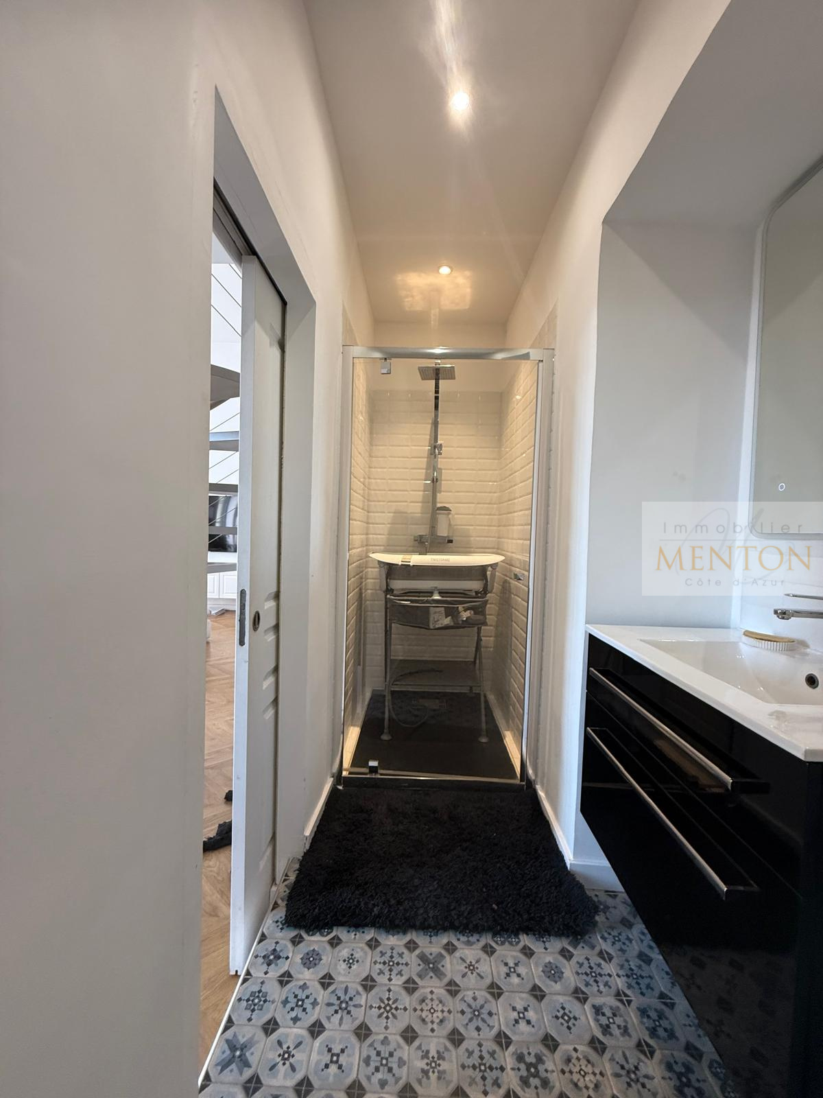 Sur la commune de Menton, au calme, magnifique 2/3 pièces avec ascenseur, exposition sud est , style ' loft ' belles prestations, rénovation intérieure irréprochable, double vitrage, climatisation, appartement composé : d'un séjour cuisine US avec une belle hauteur de plafond, une chambre, un dressing, une salle d'eau avec wc. , une deuxième salle d'eau avec wc à l'opposé de l'appartement. Une mezzanine pouvant tout à fait convenir à un enfant, ou soit une chambre d'appoint , ou un bureau.