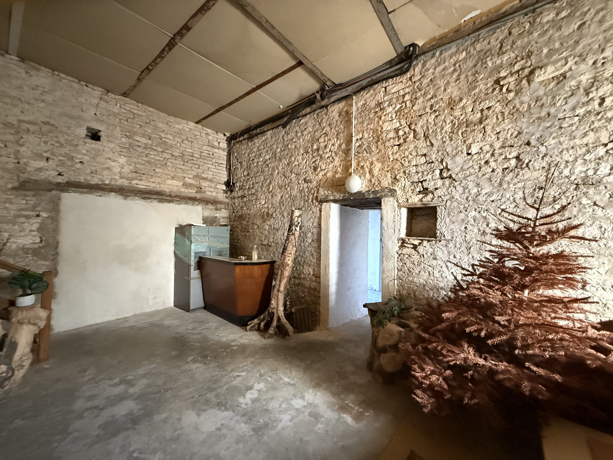 Le premier appartement se compose d'un grand salon avec cuisine ouverte, d'un espace séjour, de deux chambres, d'une salle d'eau et d'un WC. Équipé d'un poêle à granulés et de radiateurs électriques. Libre d'occupation. Potentiel locatif : 450 EUR.