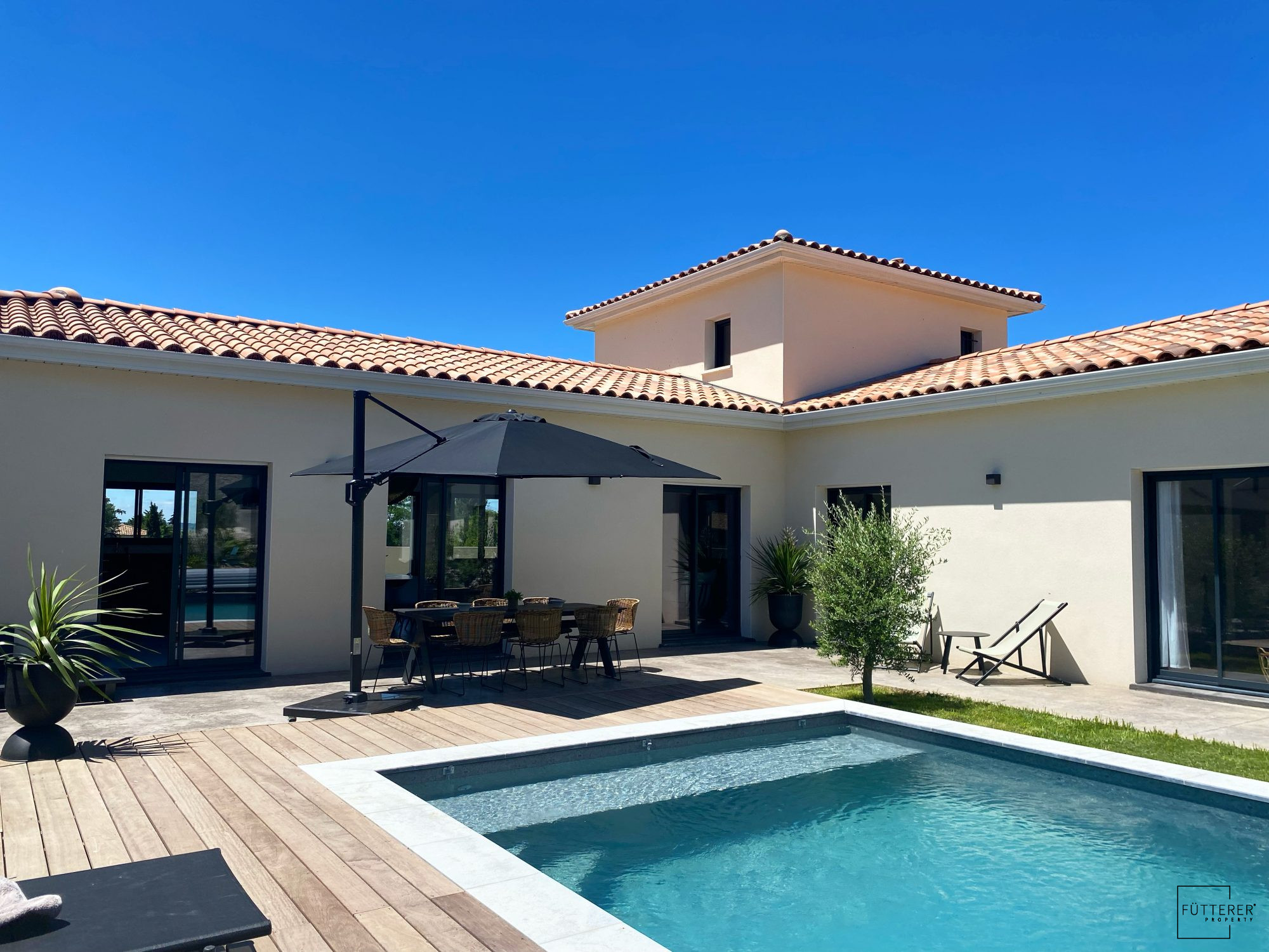 Fütterer Property vous propose à MARCORIGNAN: Maison d'architecte de 2019 dans un quartier calme et recherché avec piscine et jardin, loué en meublé.