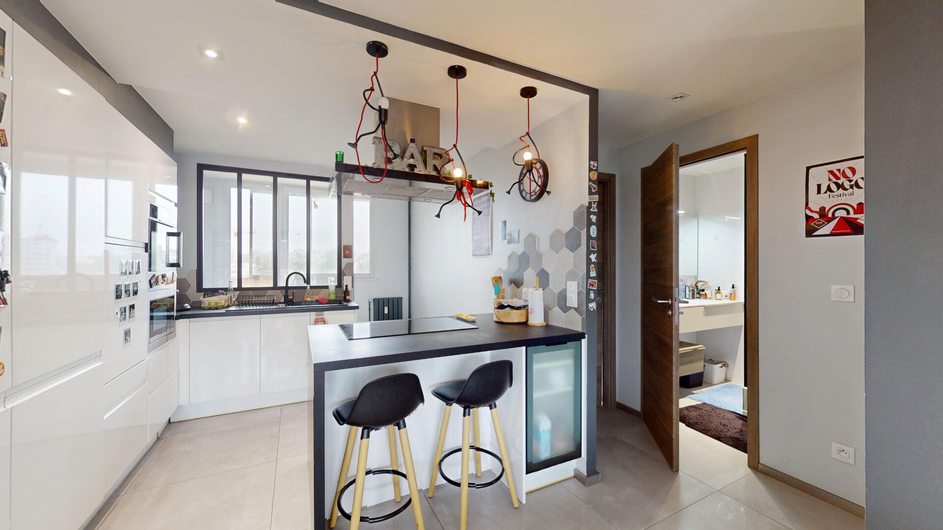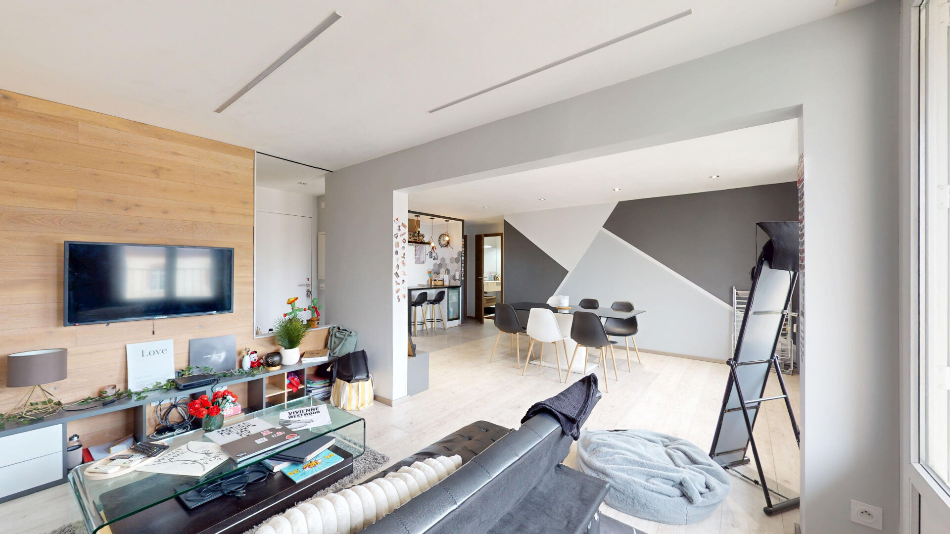 Notre agence MARC VERNIER IMMOBILIER. vous présente, à proximité immédiate de la Place Leclerc, ce bel appartement de 4 pièces situé au 5ème étage sur 6 avec ascenseur, dans une copropriété bien entretenue des années 1960. En très bon état, il se compose d'une entrée, d'un vaste salon séjour lumineux donnant accès à un grand balcon avec vue dégagée, ainsi que d'une cuisine moderne entièrement équipée, ouverte sur l'espace de vie et bénéficiant d'un accès à une loggia. L'espace nuit comprend deux chambres avec placards, une salle d'eau et des toilettes indépendants. Une cave vient compléter ce bien. Vous apprécierez le confort de cet appartement, sa luminosité ainsi que sa situation idéale, à deux pas des commerces, des transports en commun. Aucun travaux à prévoir. Nous disposons d'une visite virtuelle sur notre site internet.Copropriété de 728 lots - dont 285 lots habitation. (Pas de procédure en cours).Charges annuelles : 2400