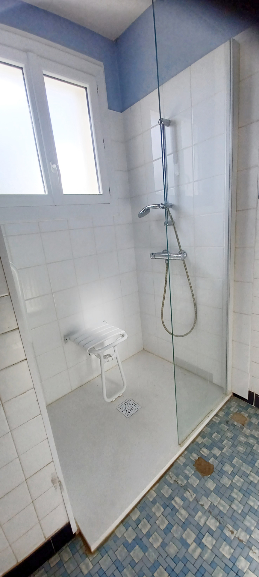 Maison indépendante, toiture 4 pans, habitation surélevée comprenant sur le même plan : entrée-couloir, salon-séjour très lumineux ouvrant sur balcon, possibilité poêle bois, 2 chambres sur parquet massif, salle d'eau neuve avec grande douche accessible à personne à mobilité réduite, toilettes séparées.